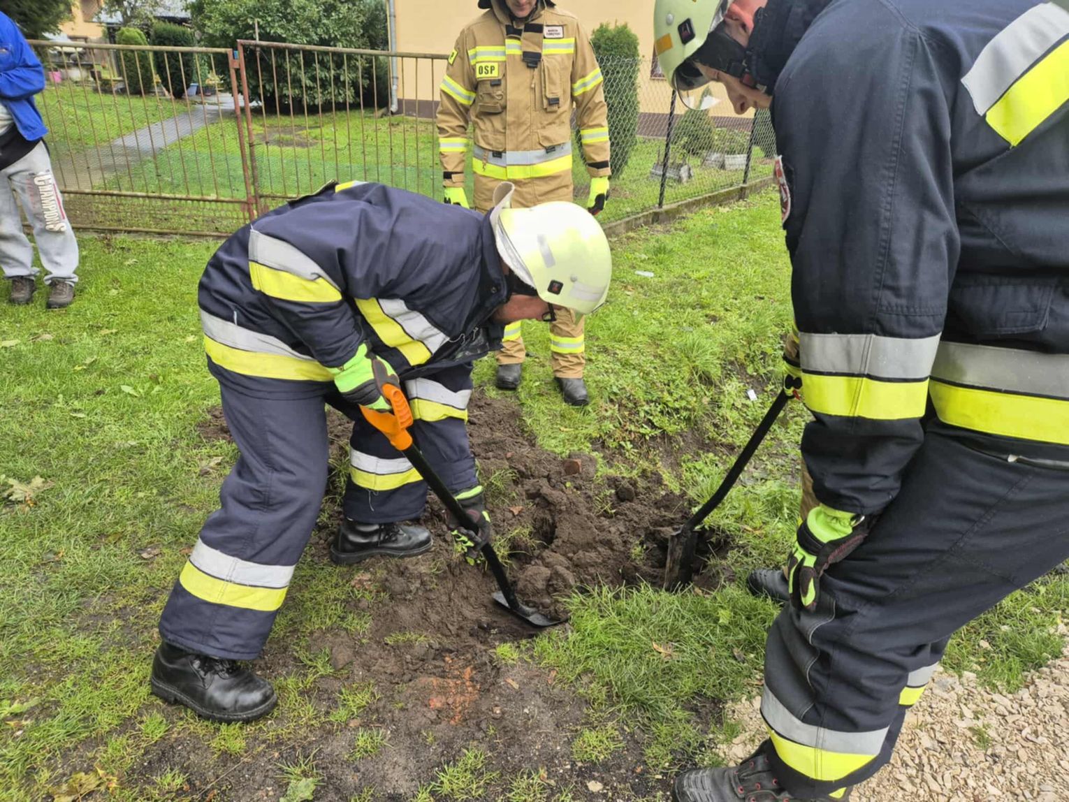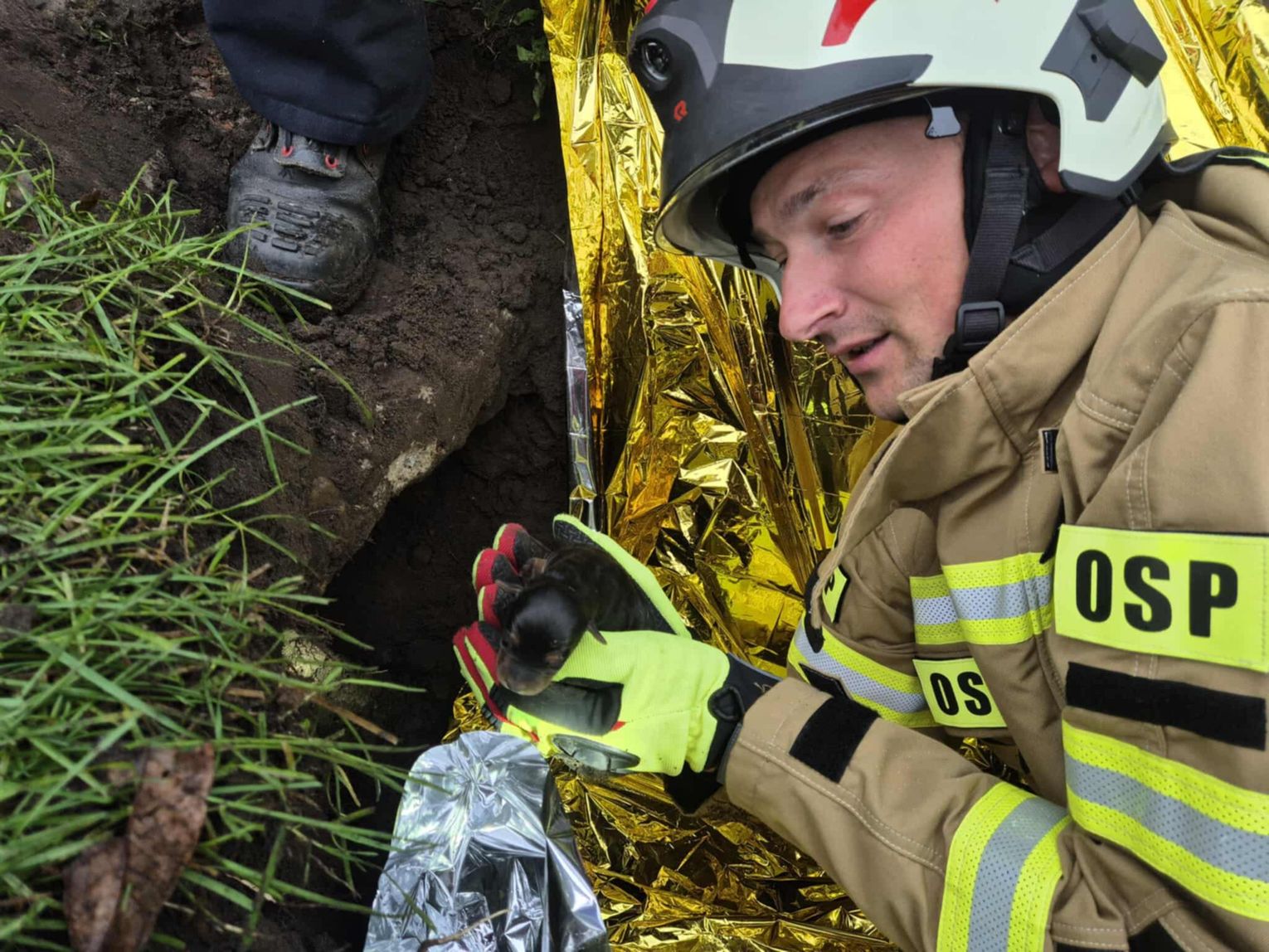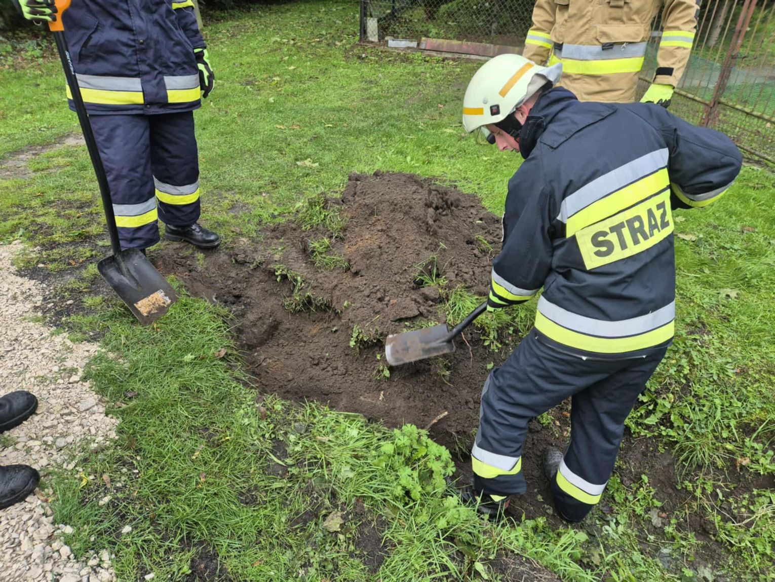 Aby wydobyć suczkę i jej dwa szczenięta konieczna była częściowa rozbiórka wąskiego przepustu, w którym utknęły zwierzęta. Po wydobyciu piesków z wąskiej przestrzeni zostały przekazane właścicielowi.