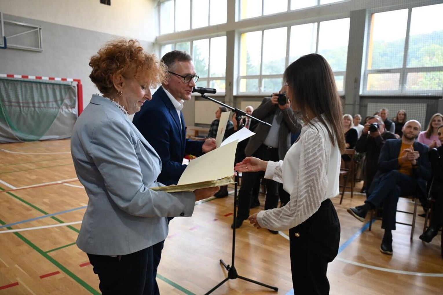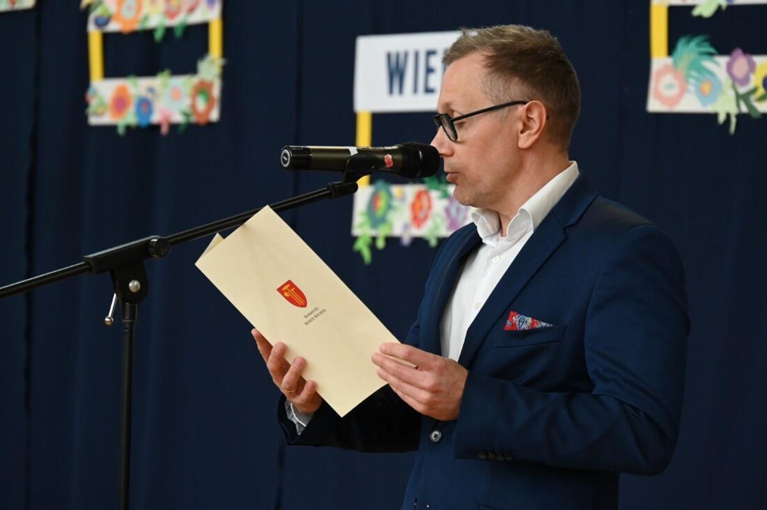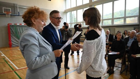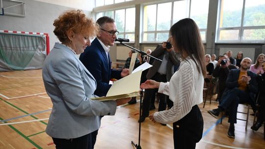 W uroczystości udział wzięli m. in.: Zastępca Burmistrz Miasta Filip Pach, Dyrektor Miejskiego Zespołu Edukacji Dorota Palej-Maliszczak, dyrektorzy, wicedyrektorzy, nauczyciele szkół podstawowych i przedszkoli w naszym mieście oraz stypendyści wraz z rodzicami.