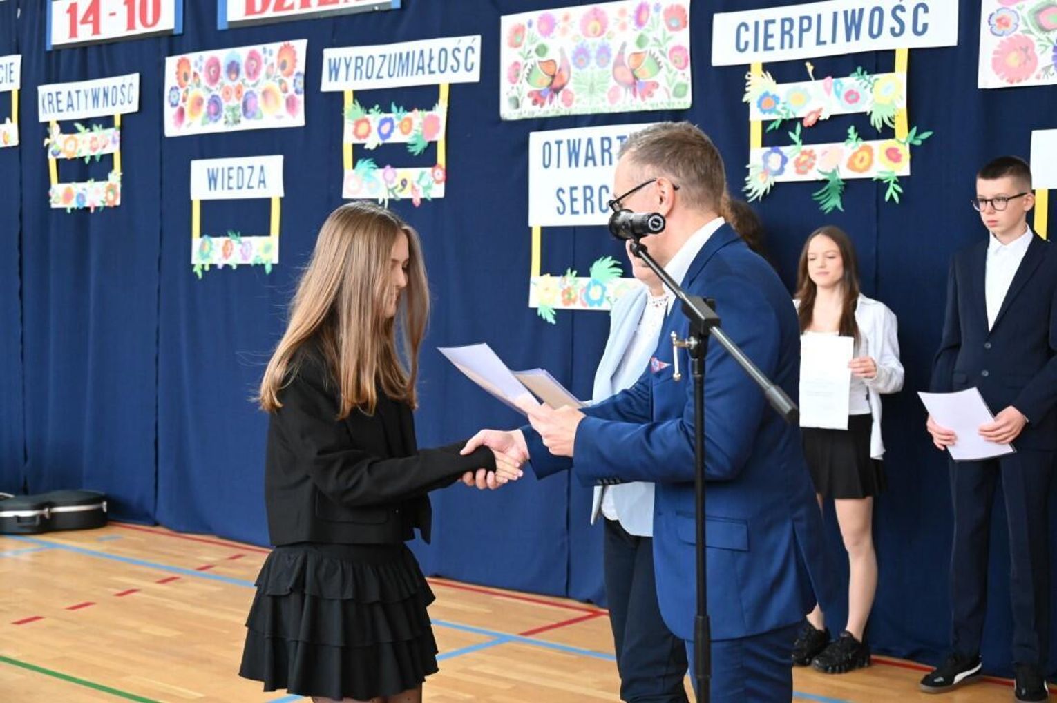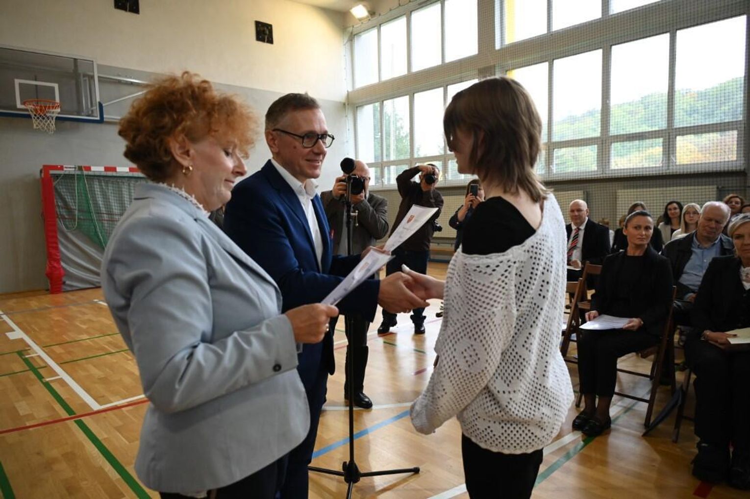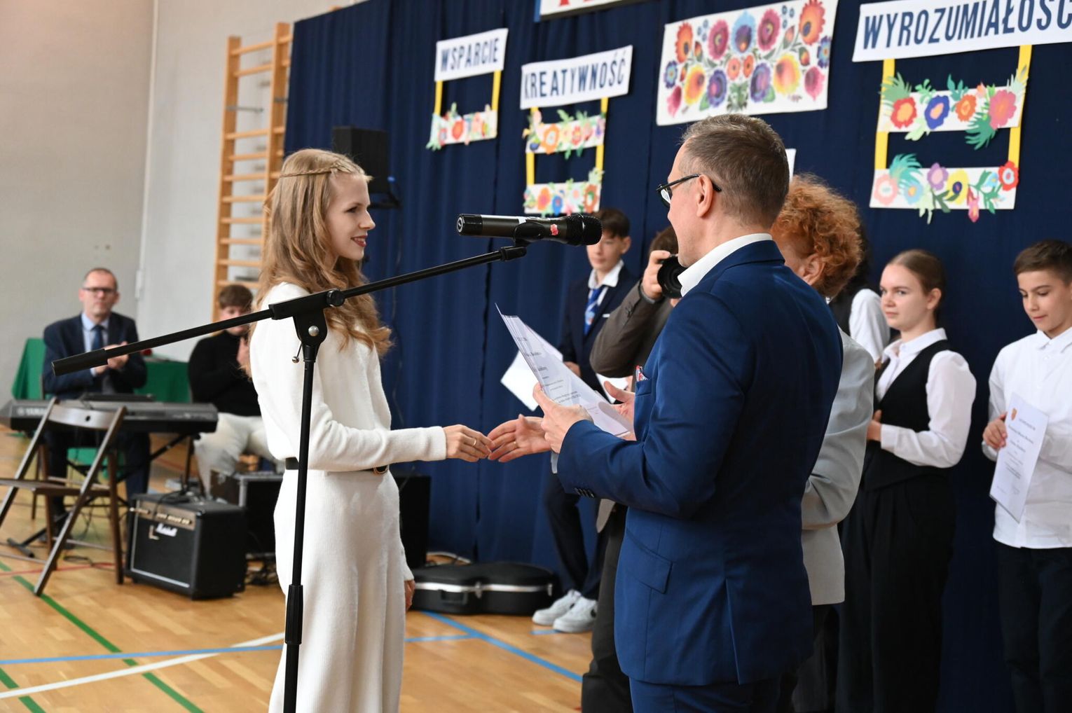 W uroczystości udział wzięli m. in.: Zastępca Burmistrz Miasta Filip Pach, Dyrektor Miejskiego Zespołu Edukacji Dorota Palej-Maliszczak, dyrektorzy, wicedyrektorzy, nauczyciele szkół podstawowych i przedszkoli w naszym mieście oraz stypendyści wraz z rodzicami.
