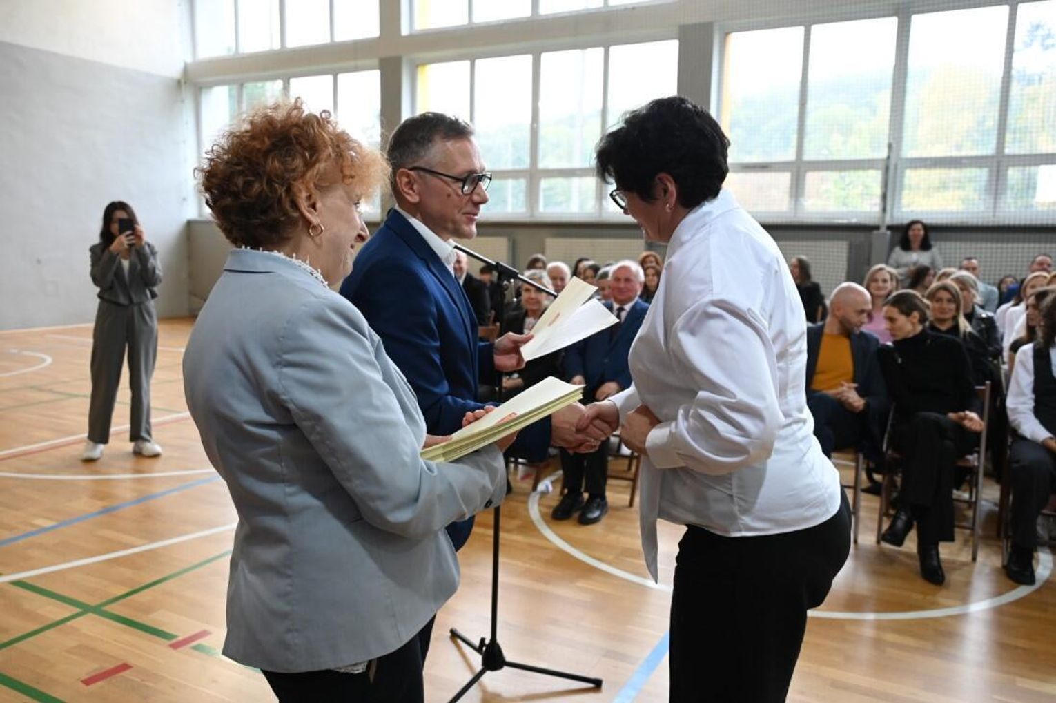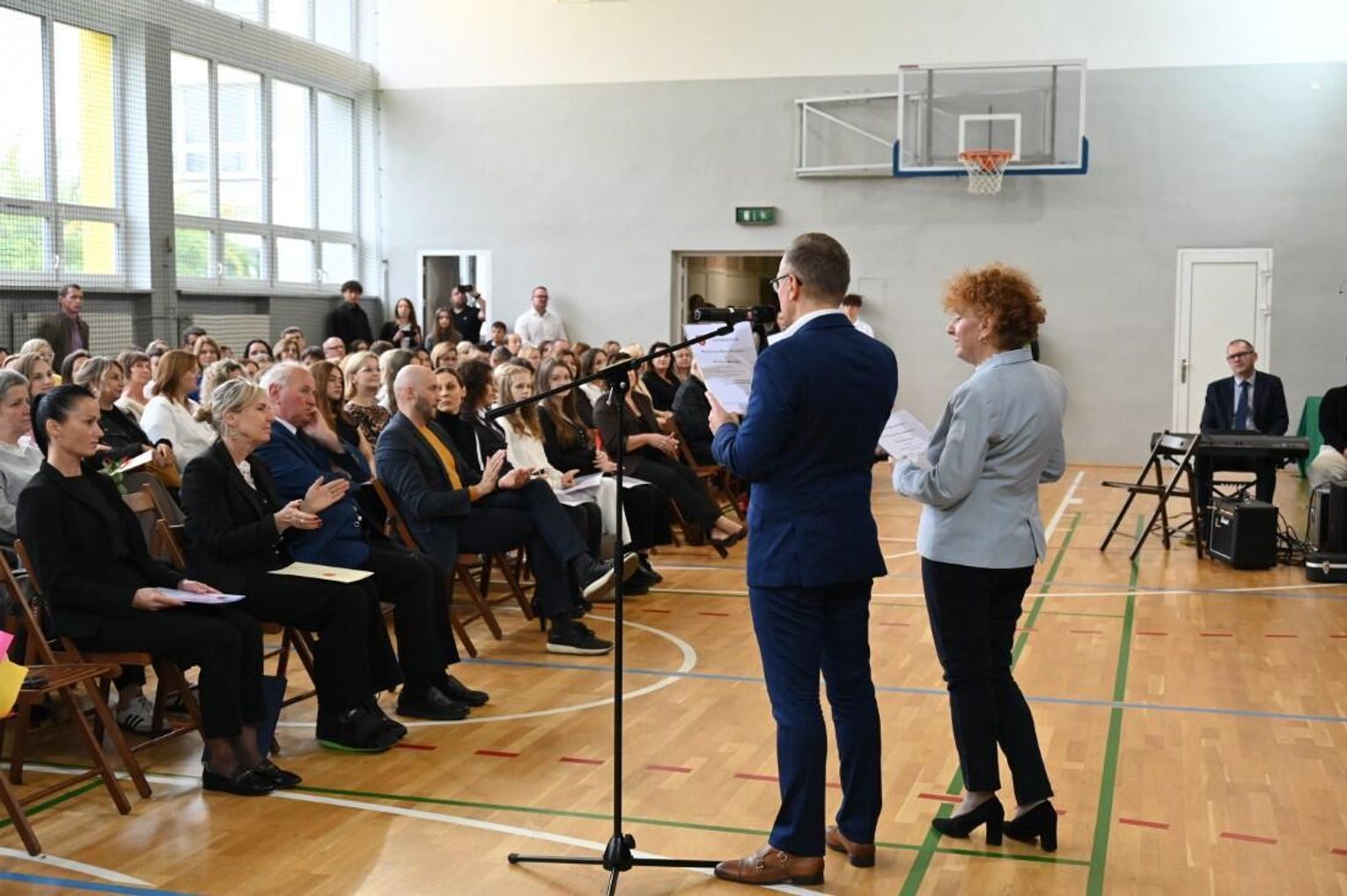 Podczas uroczystości Zastępca Burmistrza Miasta oraz Dyrektor MZE wręczyli nagrody Pani Katarzynie Cieśli Dyrektorowi Miejskiego Przedszkola nr 1 w Bochni i Pani Barbarze Krakowskiej – Dyrektorowi Szkoły Podstawowej nr 4 w Bochni oraz nauczycielom miejskich placówek oświatowych w Bochni: