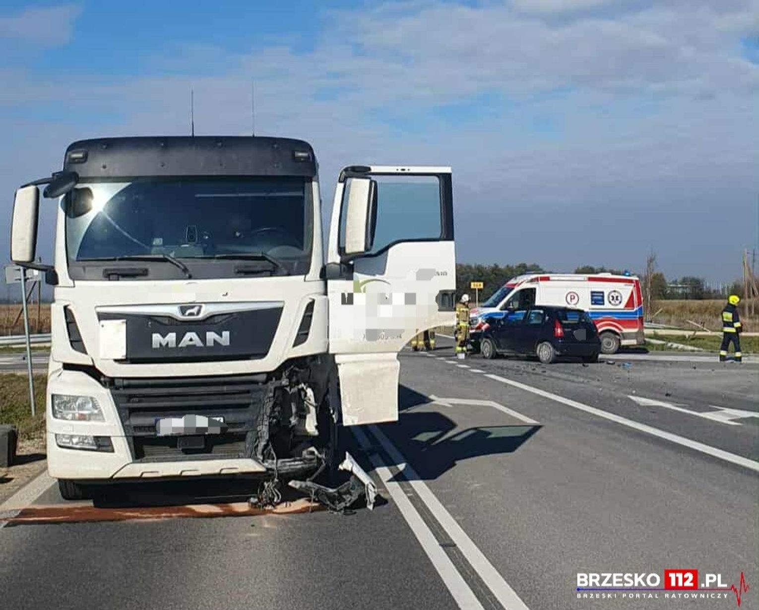 Po przybyciu na miejsce zdarzenia pierwszych zastępów straży pożarnej okazało się, że pojazdy blokują dwa pasy ruchu i droga jest całkowicie zablokowana. W wyniku zdarzenia kierujący samochodem osobowym został poszkodowany i znajduje się pod opieką zespołu ratownictwa medycznego.