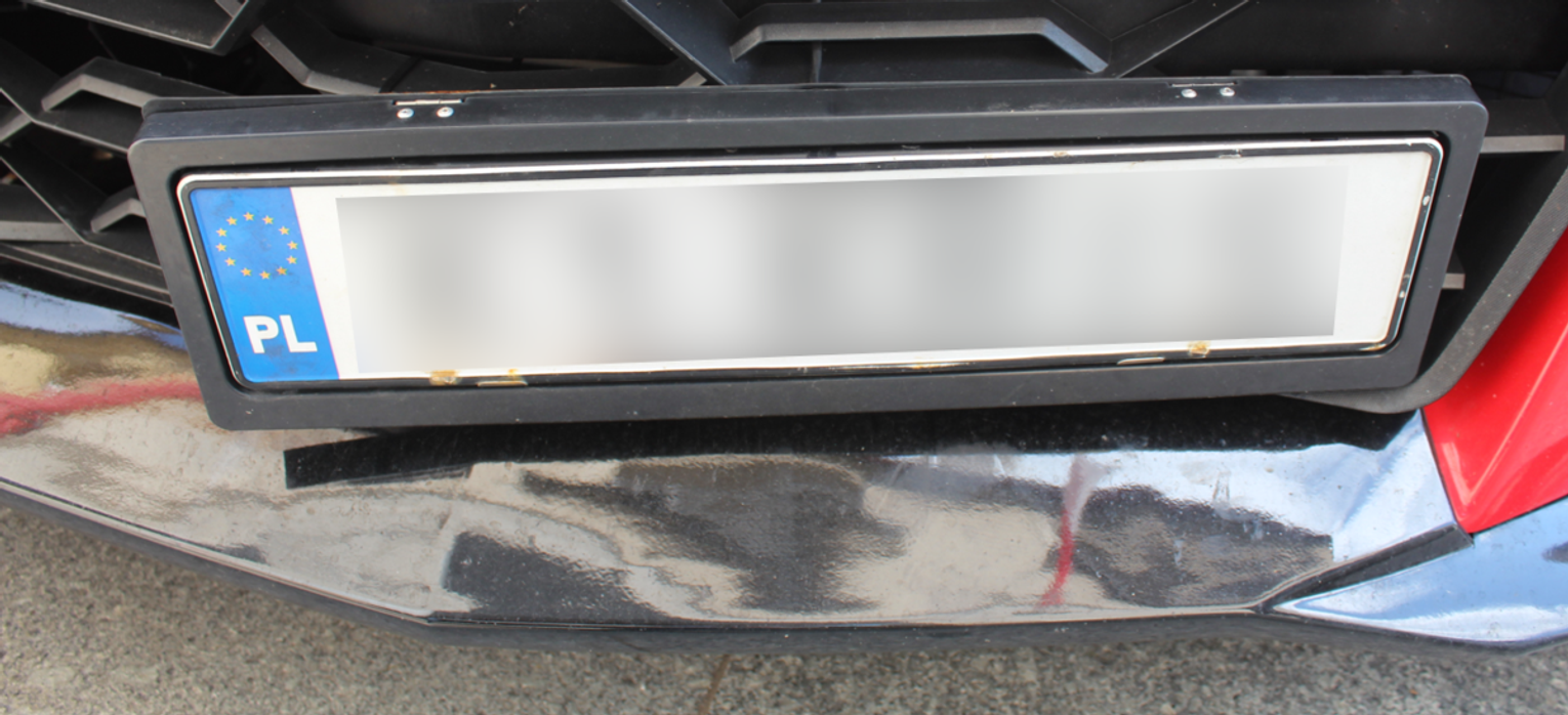 Podczas czynności okazało się, że… tablice rejestracyjne w kontrolowanym samochodzie są umieszczone na ruchomym mechanizmie. Z zewnątrz widoczne były podrobione tablice rejestracyjne przypominające oryginalne, natomiast prawidłowe numery, przypisane do pojazdu były schowane z tyłu mechanizmu.