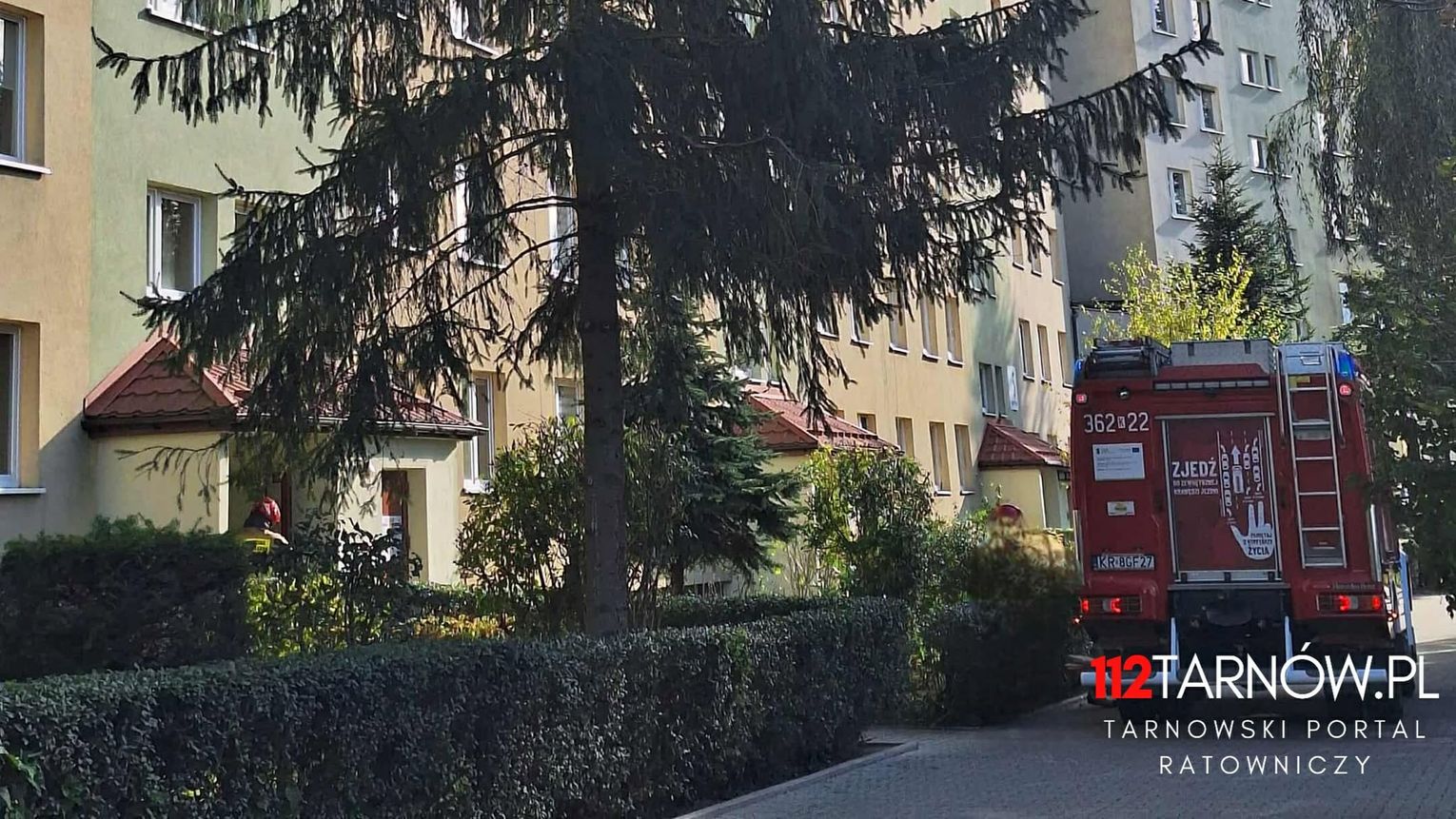 Strażacy zostali zawiadomieni w niedzielę 19 października po godzinie 14:00, że w bloku przy ulicy Bitwy pod Monte Cassino w Tarnowie na klatce wyczuwalny jest zapach spalenizny. Na miejsce zostały zadysponowane łącznie cztery zastępy straży pożarnej w tym drabina hydrauliczna.