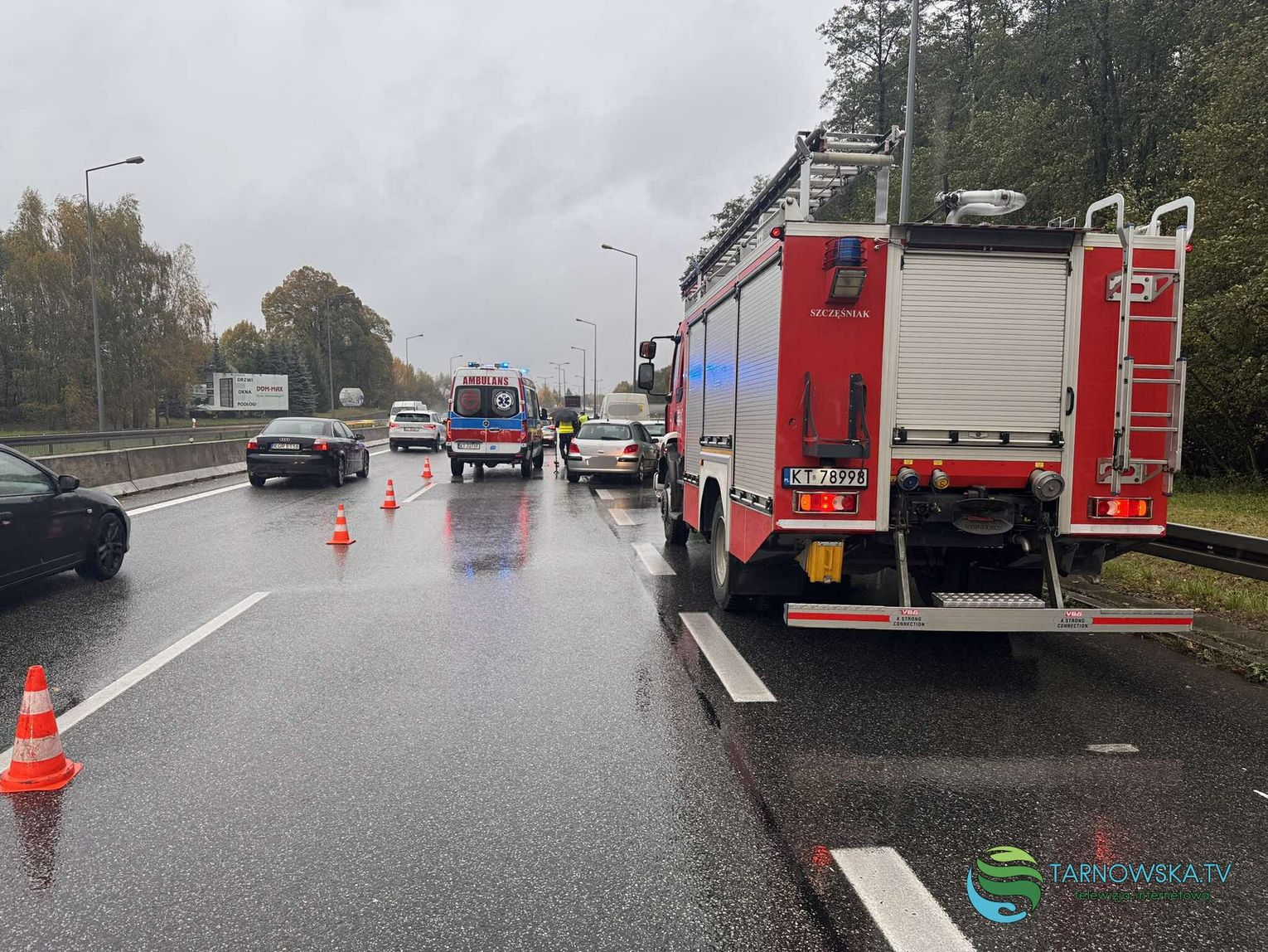 Na czas prowadzonych działań przez służby ruch drogowy w kierunku centrum Tarnowa odbywał się lewym pasem, kierujący jadący od Wojnicza muszą liczyć się ze sporymi utrudnieniami. Okoliczności zdarzenia wyjaśnia policja.