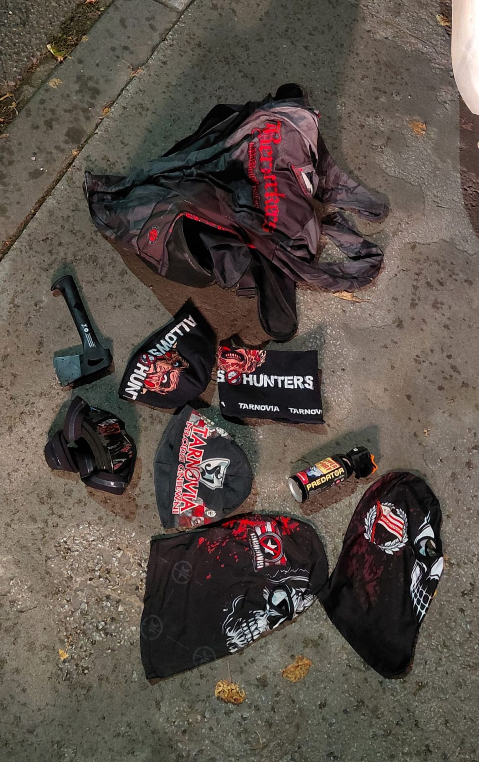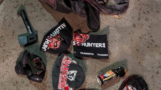 Około godziny 21:35 policjanci zauważyli na rondzie przy skrzyżowaniu ulic Starodąbrowskiej i Słonecznej pojazd marki BMW, którym według uzyskanych informacji, mieli poruszać się uczestnicy zdarzenia. Po chwili samochód został zatrzymany do kontroli. Podczas wykonywanych czynności policjanci ujawnili w pojeździe niebezpieczne przedmioty, w tym siekierę oraz gaz pieprzowy. Przedmioty zostały zabezpieczone do dalszych czynności. Na ten moment sprawa jest procedowana pod kątem art. 50a Kodeksu wykroczeń.