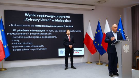 - Inwestowanie w kompetencje cyfrowe młodego pokolenia to nie tylko odpowiedź na wyzwania współczesności, ale także możliwość wyrównywania szans edukacyjnych w całym regionie. Program „Cyfrowy Uczeń” to krok w stronę nowoczesnej, dostępnej dla wszystkich edukacji. Dofinansowanych zostanie 271 placówek na kwotę ponad 5,4 mln zł. Z tych pieniędzy zakupione zostaną m.in. laptopy, cyfrowe materiały edukacyjne i ćwiczeniowe, oprogramowania czy tablety. W ten sposób rząd włącza się w rozwój młodego pokolenia poprzez wdrażanie nowoczesnych technologii już na poziomie wychowania przedszkolnego - mówi wojewoda małopolski Krzysztof Jan Klęczar.