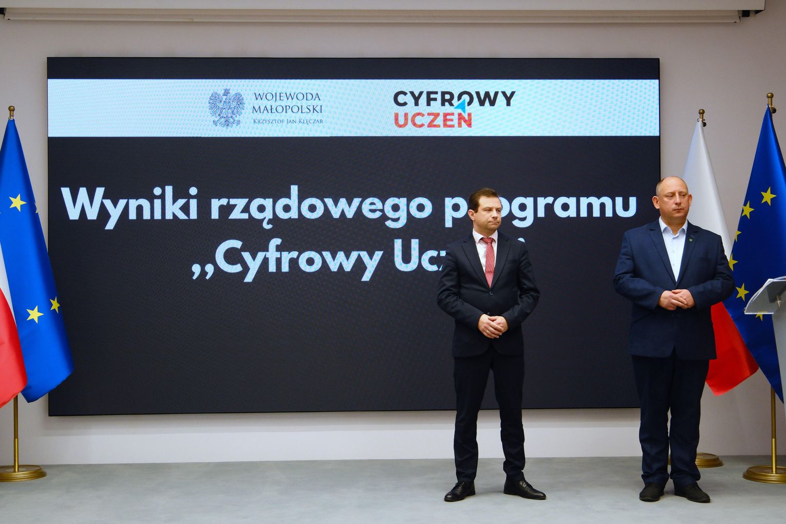 Dzisiaj w Małopolskim Urzędzie Wojewódzkim w Krakowie wojewoda małopolski Krzysztof Jan Klęczar omówił wyniki Rządowego programu wspierania organów prowadzących szkoły i placówki w rozwijaniu umiejętności cyfrowych dzieci
