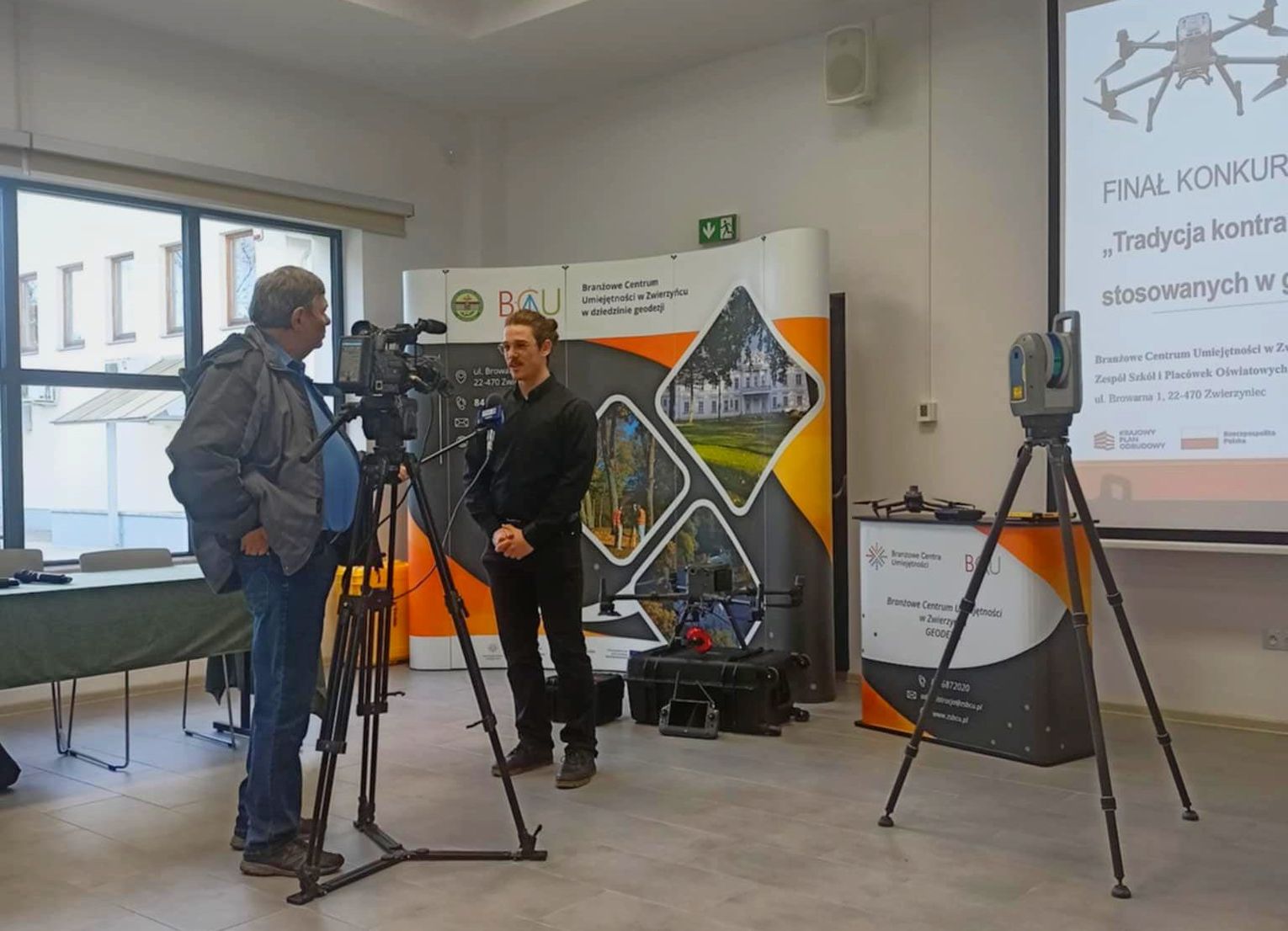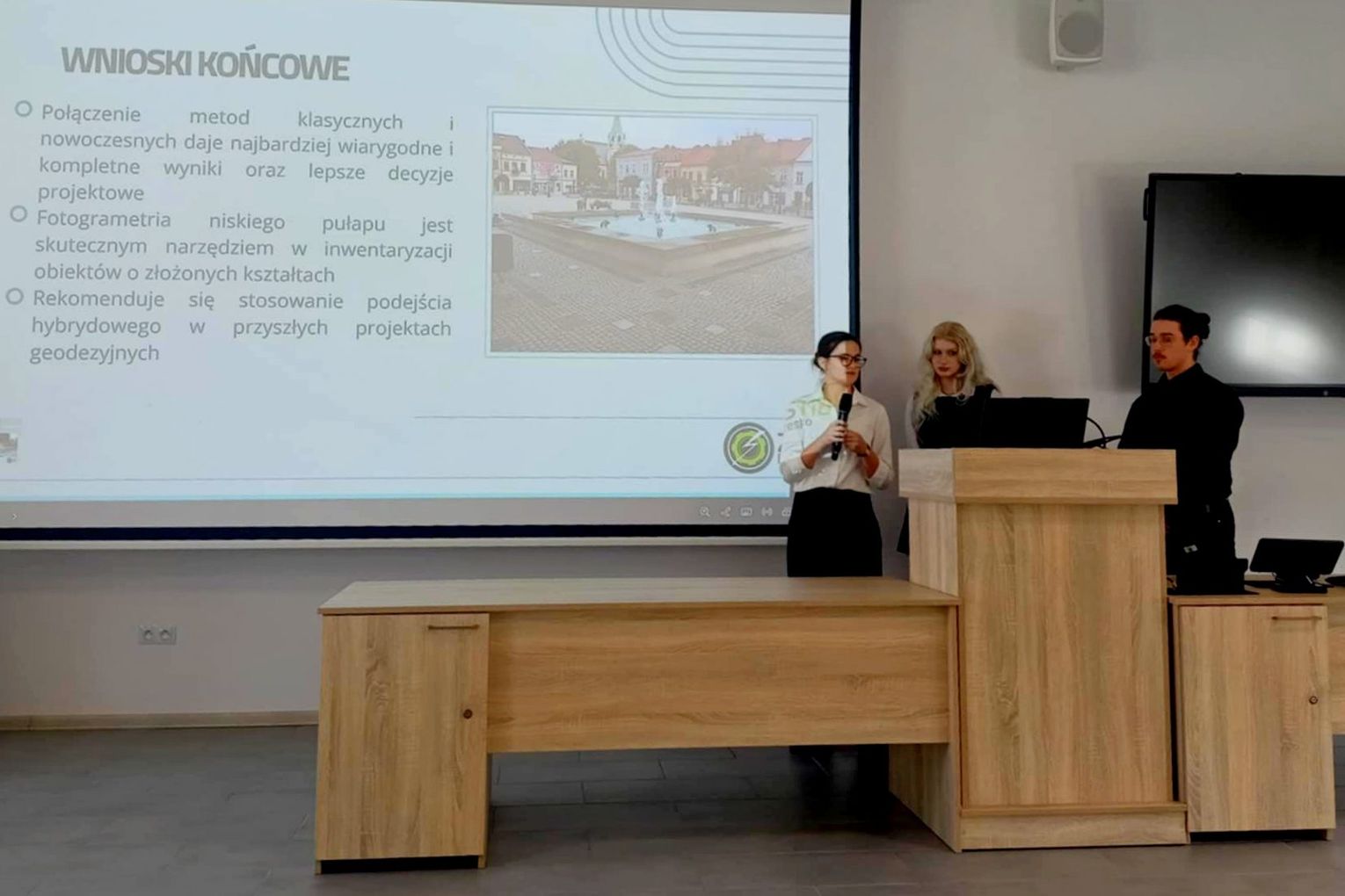 Rynek stał się laboratorium, a fontanna mikrokosmosem dla eksperymentu, w którym każdy punk i linia mają znaczenie. Po zmaganiach konkursowych uczniowie uczestniczyli w warsztatach ze skaningu laserowego – narzędziach, które pozwalają uchwycić rzeczywistość w niezwykle dokładny sposób. Widziane z lotu drona, odczytywane przez cyfrowe modele, przestrzenie miasta zyskują nowy wymiar: geometryczny, dynamiczny, niemal namacalny.