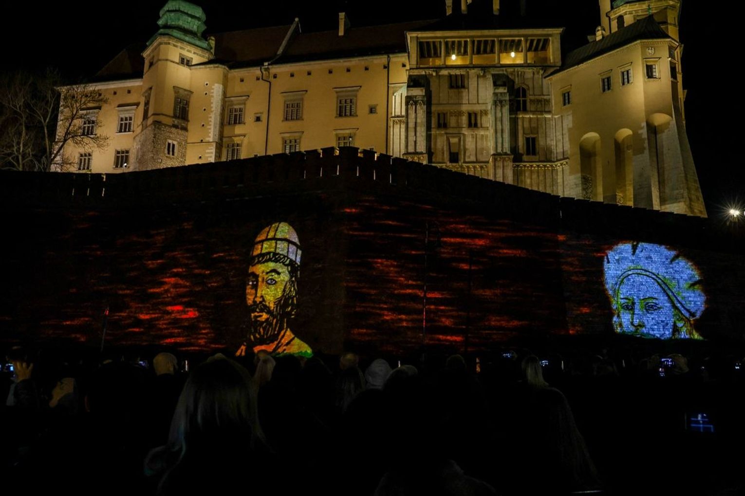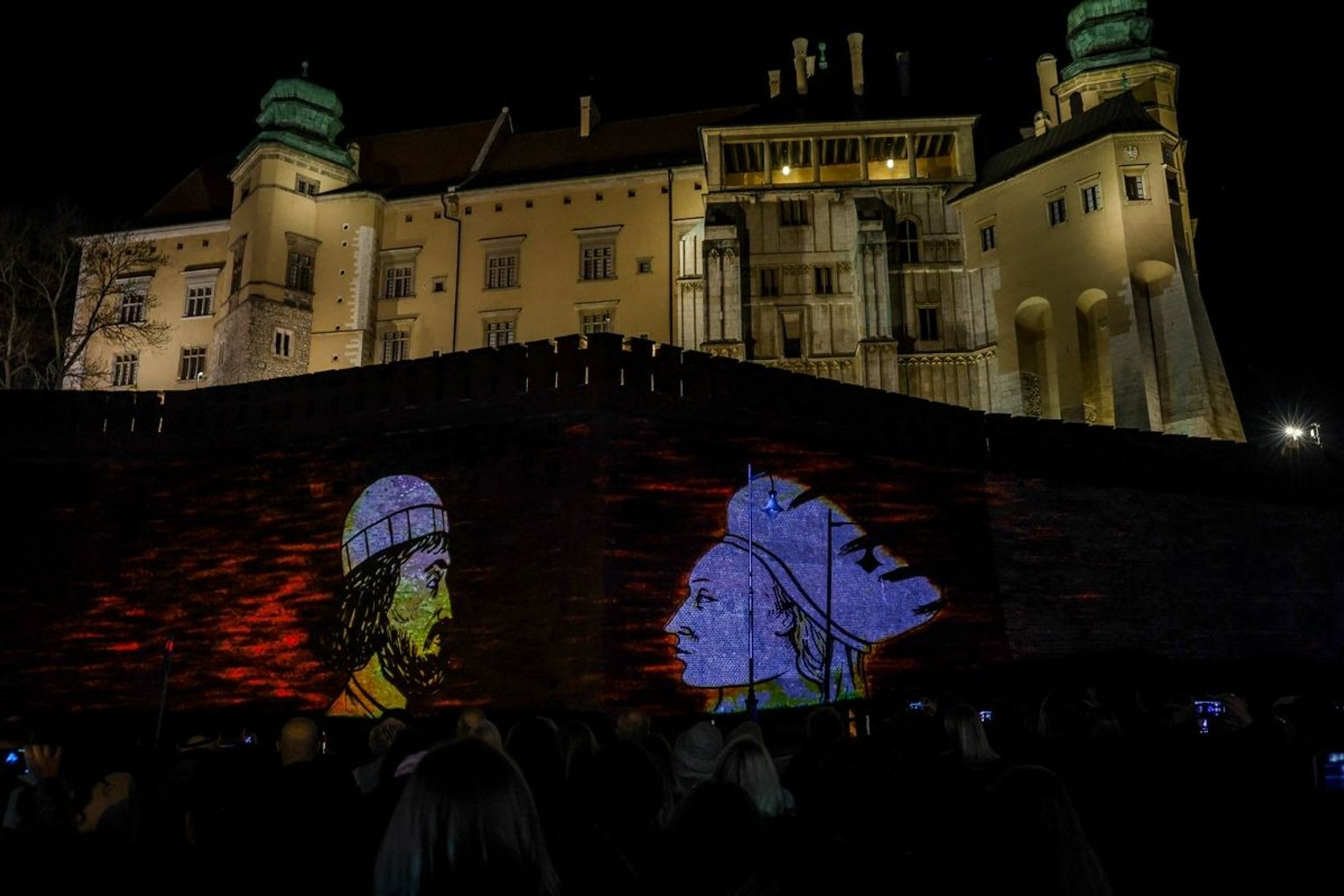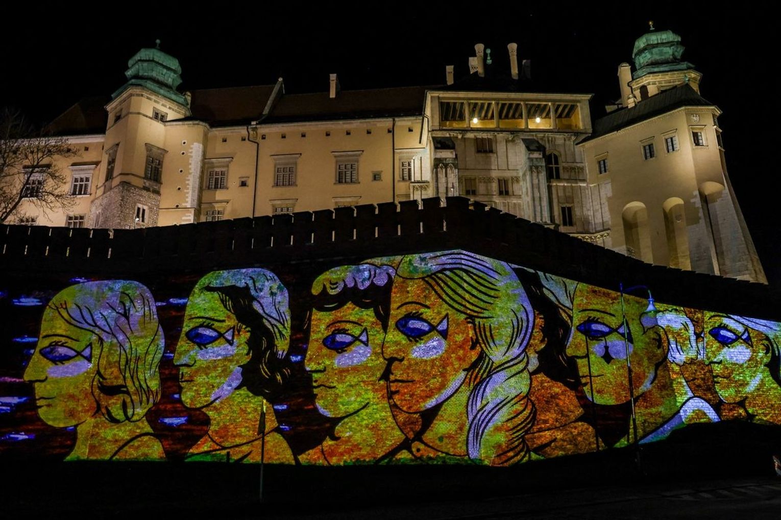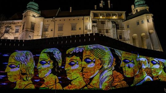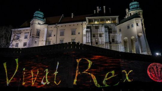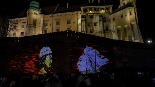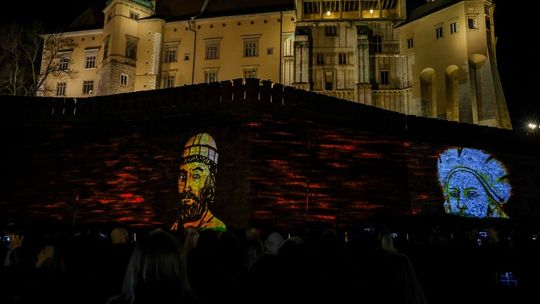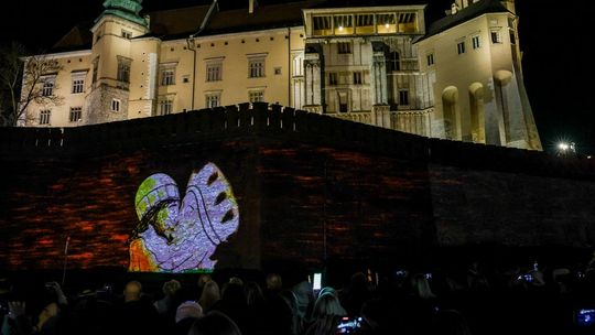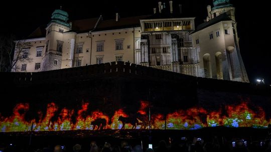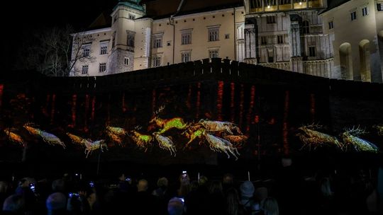 Projekcja na trzech ścianach murów wawelskich