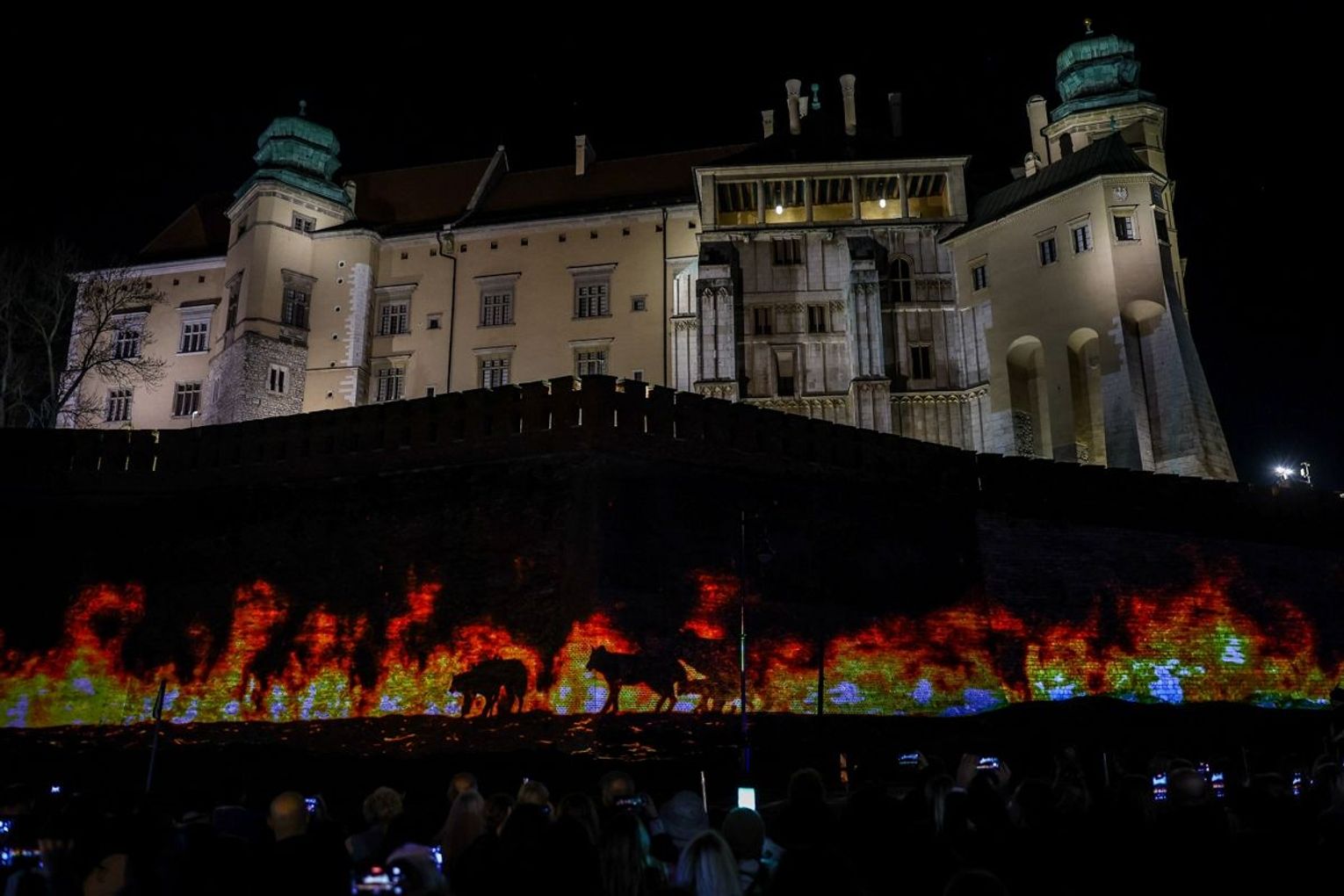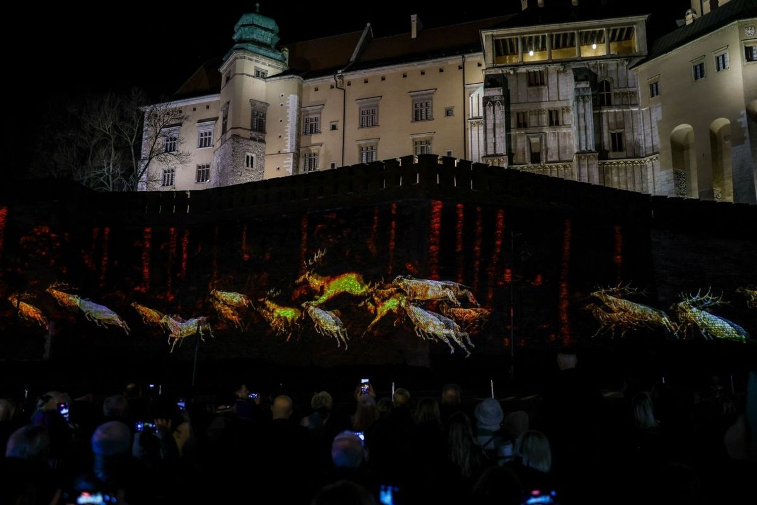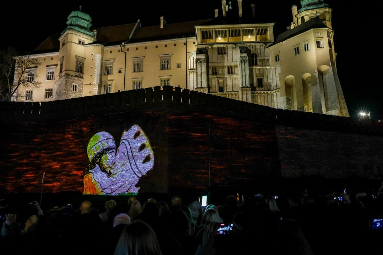 Projekcja na trzech ścianach murów wawelskich