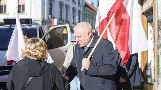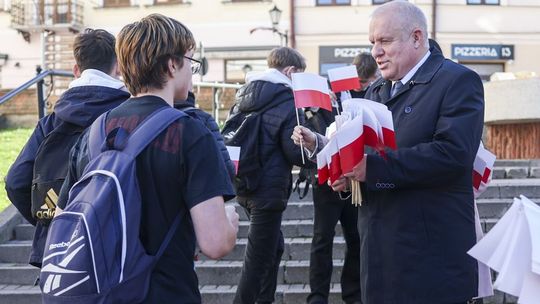 Wicemarszałek Województwa Małopolskiego Ryszard Pagacz przekazywał dzisiaj biało-czerwone flagi mieszkańcom Tarnowa i zachęcał do eksponowania barw narodowych w najbliższych dniach. To czas radości, dumy i patriotyzmu. Uhonorujmy tych, którzy walczyli o wolność Polski.