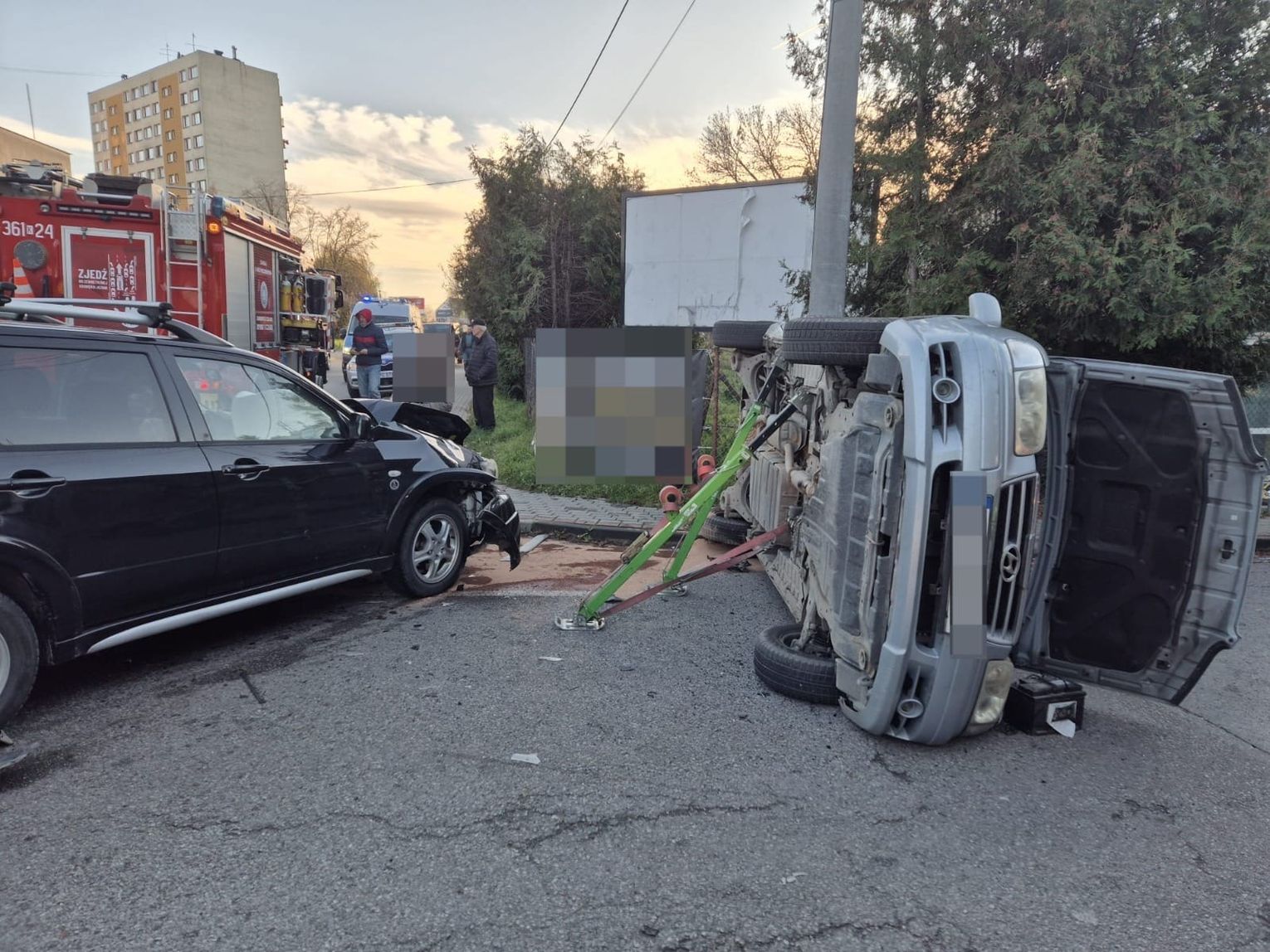 Po przybyciu na miejsce strażaków okazało się, że jeden z pojazdów znajduje się na boku a w środku uwięziona została kierująca pojazdem. Strażacy ustabilizowali pojazd i ewakuowali poszkodowaną a następnie przekazali ją ratownikom medycznym, kobieta została przewieziona przez zespół ratownictwa medycznego do szpitala na dalsze badania, była przytomna. Kierowca drugiego samochodu również został przebadany przez medyków, on nie doznał obrażeń.