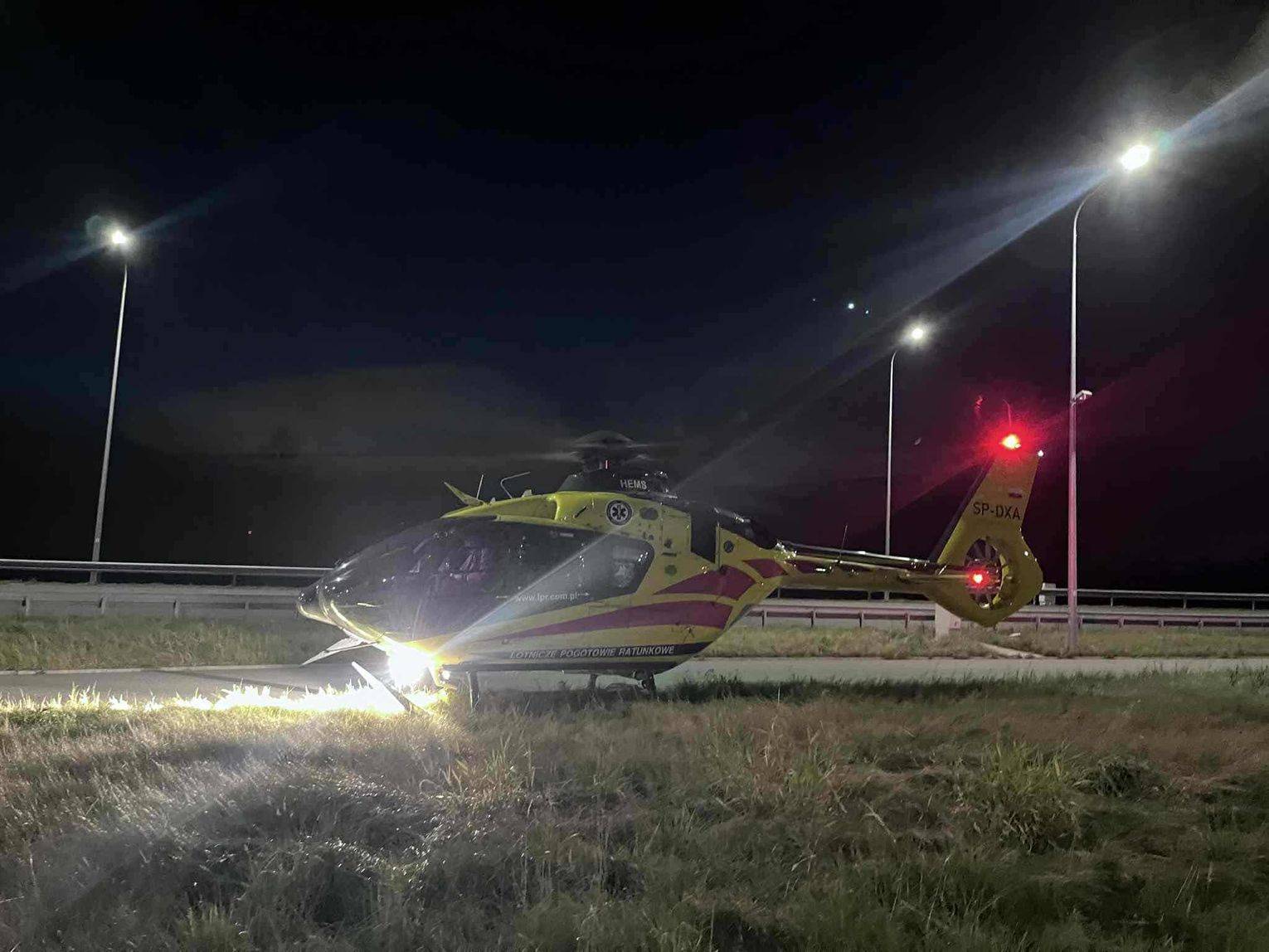 Do poważnego wypadku doszło w środowy wieczór 19 listopada w Pieniążkowicach. Mężczyzna, który odniósł obrażenia po wybuchu akumulatora musiał pilnie trafić do szpitala. Śmigłowiec LPR lądował przy tunelu na Zakopiance, a następnie został przetransportowany do szpitala.