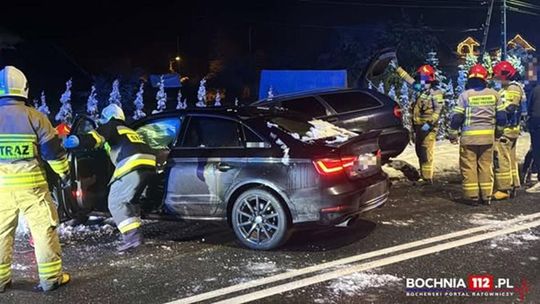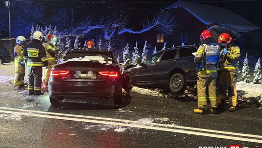 Według wstępnych ustaleń funkcjonariuszy 23-letni kierujący samochodem osobowym marki Audi jadąc w kierunku Nowego Wiśnicza stracił panowanie nad prowadzonym pojazdem i zjechał na przeciwny pas ruchu, gdzie doszło do zderzenia z pojazdem marki Volvo, kierowanym przez 24-latka. Kierowcy obu pojazdów byli trzeźwi. Poszkodowany z zdarzeniu został pasażer Volvo, który został przewieziony do szpitala. Czynności mające na celu dokładne wyjaśnienie okoliczności zdarzenia prowadzą bocheńscy policjanci. - przekazał mł. asp. Daniel Bułatowicz, rzecznik prasowy KPP w Bochni.