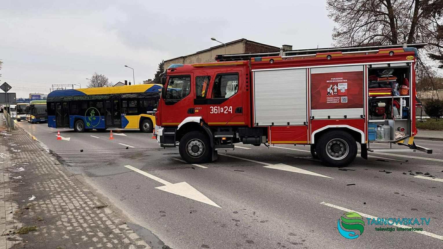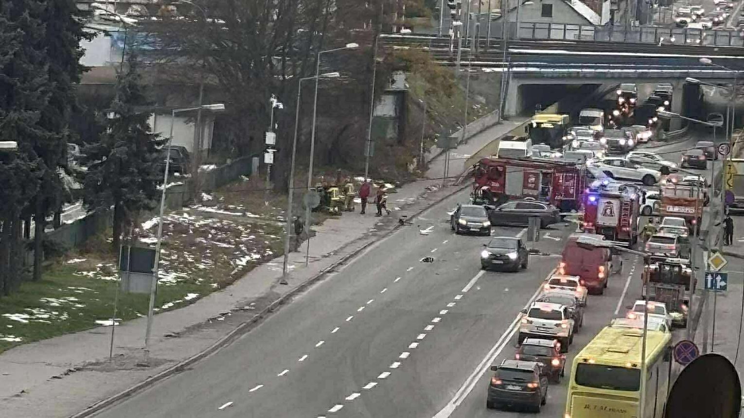 Początkowo droga została całkowicie zablokowana, obecnie wprowadzono ruch wahadłowy, jednym pasem, którym kierują strażacy.