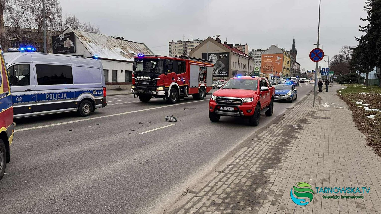 W piątek 28 listopada około godziny 14:00 na skrzyżowaniu ulic Krakowska i Kochanowskiego w Tarnowie doszło do zderzenia dwóch samochodów osobowych. Na miejsce zostały zadysponowane zastępy straży pożarnej, zespoły ratownictwa medycznego i patrole policji.