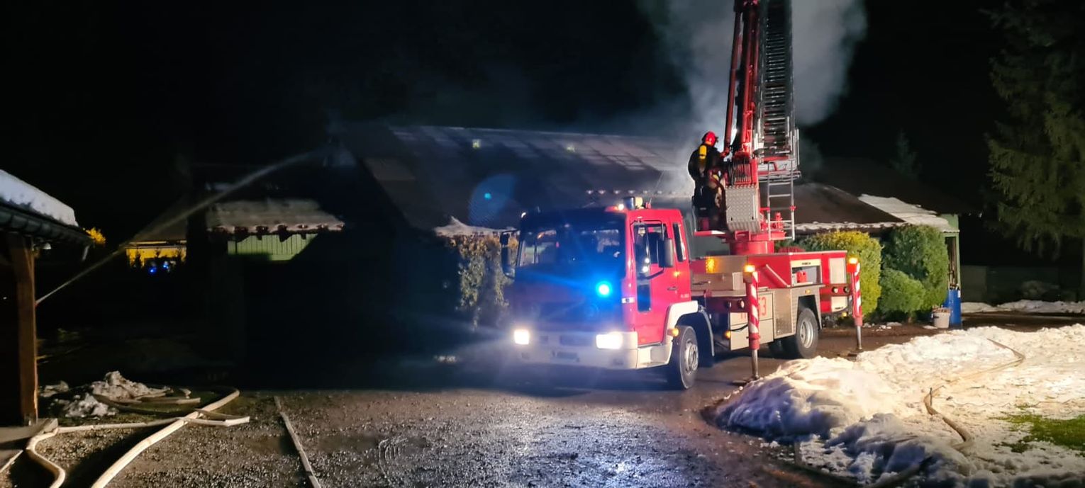 Strażacy zostali zaalarmowani około godziny 16:30 w piątek 28 listopada o pożarze budynku gospodarczego w Maszkienicach, powiat brzeski, na miejsce udało się siedem zastępów straży pożarnej z Brzeska i terenu powiatu brzeskiego.