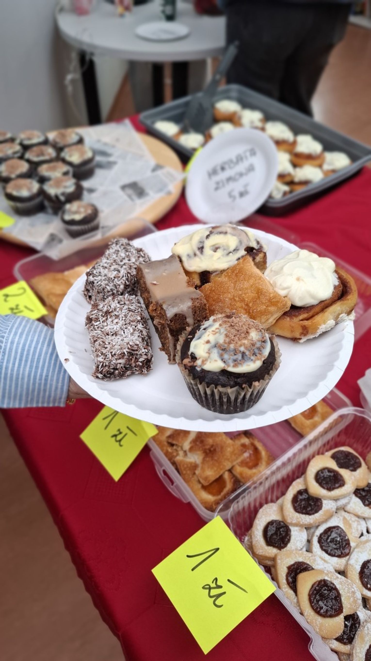 Przygotowane przez uczennice babeczki, ciasteczka, cynamonki i inne słodkości bardzo szybko znalazły nabywców, którzy, delektując się również zimową herbatą, przekazywali pieniądze na karmę i lekarstwa dla bezdomnych psów i kotów.