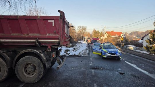 W miejscowości Nowy Wiśnicz na drodze wojewódzkiej 965 doszło do zdarzenia drogowego z udziałem samochodu dostawczego oraz ciężarowego. Pojazdami podróżowały łącznie 4 osoby w tym 3 samochodem dostawczym.
