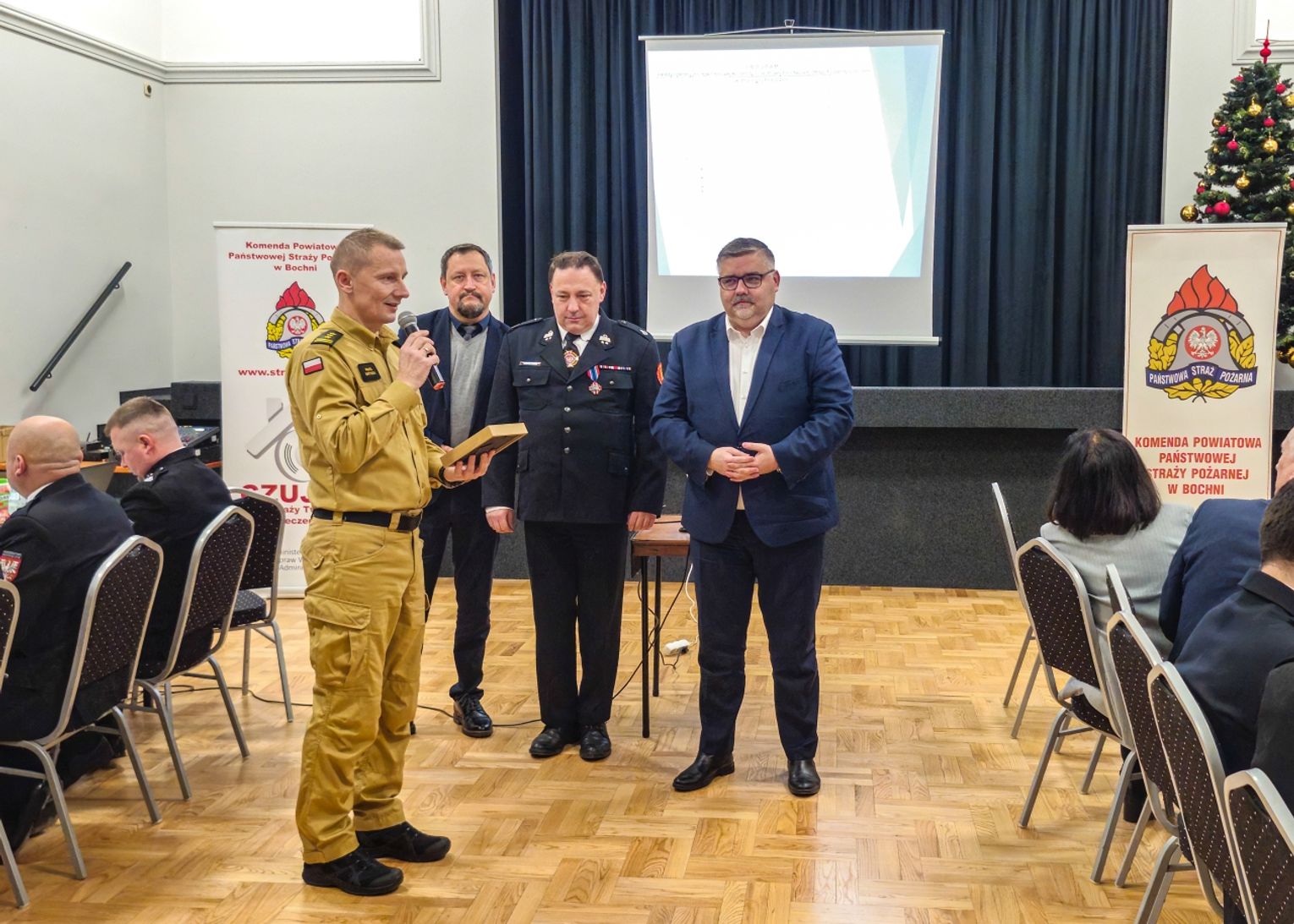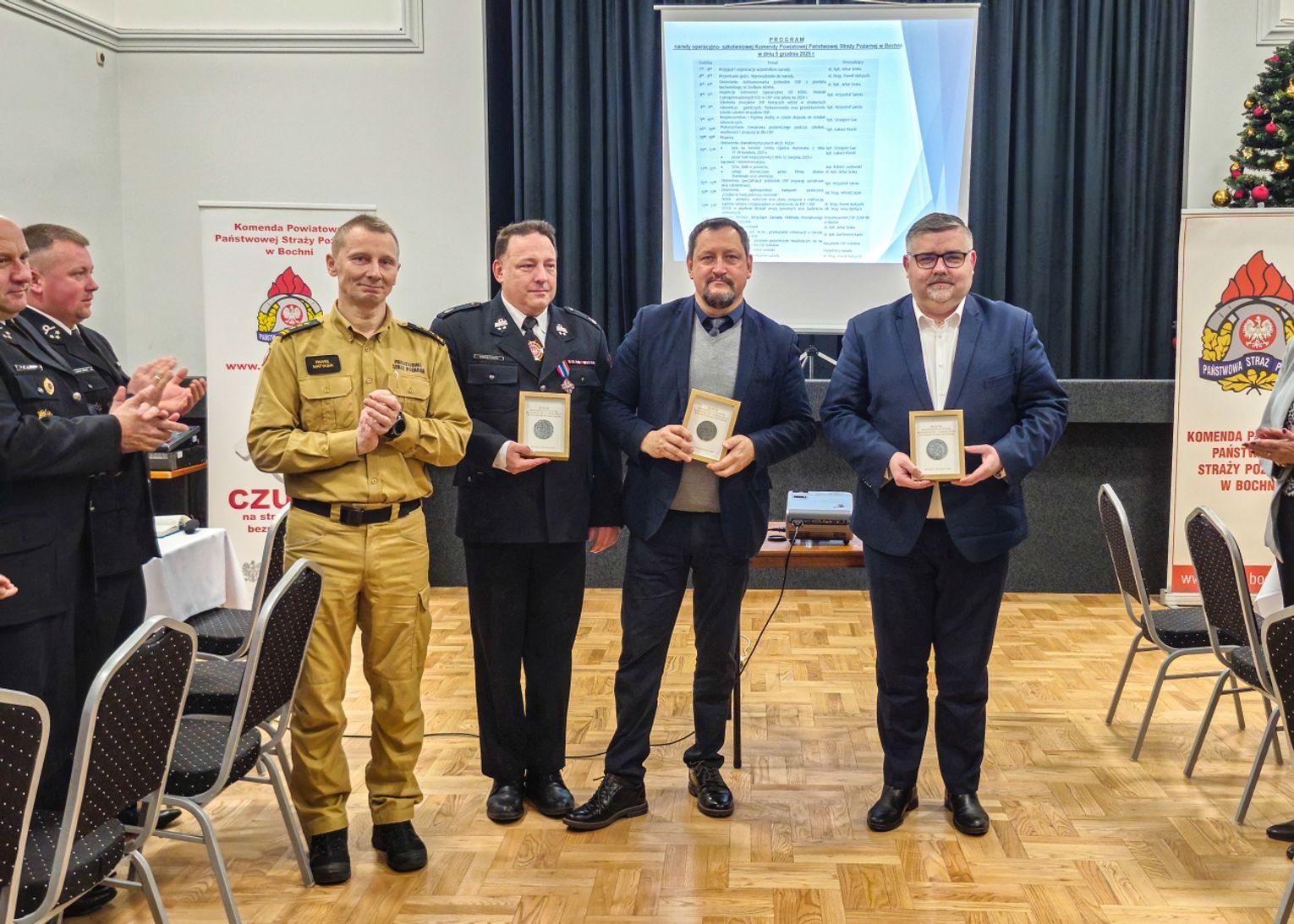 Podczas narady wręczono również okolicznościowe medale z okazji 30-lecia Krajowego Systemu Ratowniczo-Gaśniczego. W gronie uhonorowanych znaleźli się: Starosta Bocheński Adam Korta, Wicestarosta Ryszard Drożdżak i dh Tomasz Całka. Odznaczenia stanowiły wyraz uznania dla wieloletniego zaangażowania i wkładu w rozwój systemu bezpieczeństwa na terenie powiatu.