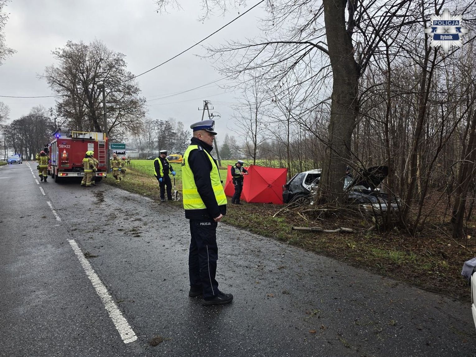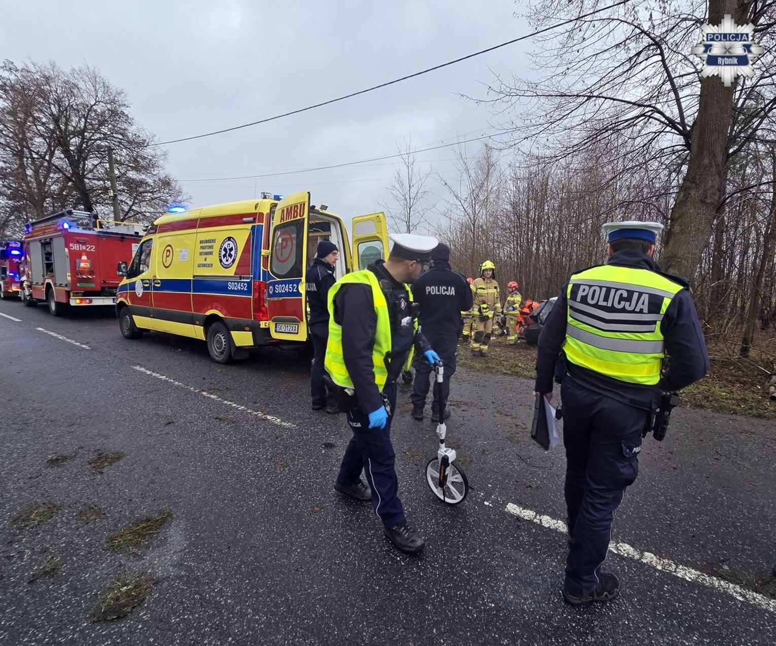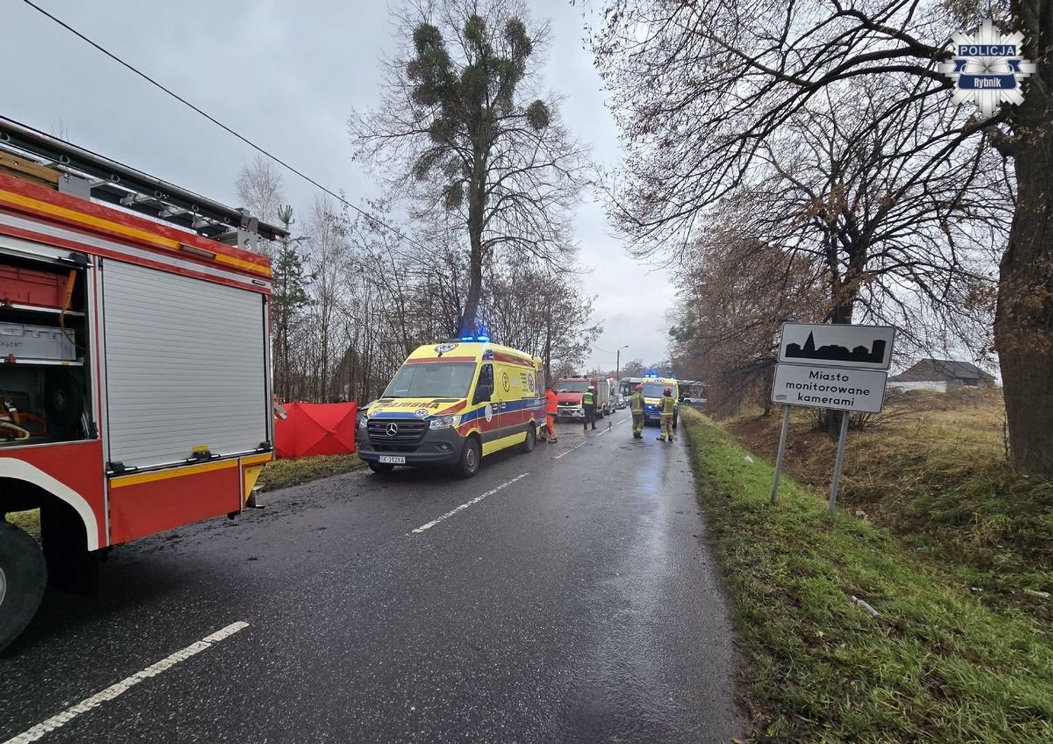 Do wypadku doszło dzisiaj około godziny 11.40 na ulicy Czecha w Rybniku. Ze wstępnych ustaleń policjantów wydziału ruchu drogowego wynika, że kierujący volkswagenem golfem 26-latek, jadąc w kierunku Rybnika, zjechał na przeciwległy pas ruchu i uderzył w przydrożne drzewo. Mężczyzna podróżował wraz z 25-letnim mieszkańcem powiatu rybnickiego, który w wyniku odniesionych obrażeń zginął na miejscu. Kierujący osobówką w stanie ciężkim został zabrany do szpitala. Pomimo akcji ratowniczej, obrażenia okazały się na tyle poważne, że jego życia nie udało się uratować. Rybniccy śledczy badają przyczyny oraz okoliczności tego tragicznego w skutkach wypadku.