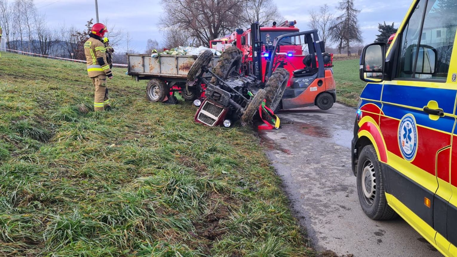 Służby zostały poinformowane we wtorek 16 grudnia po godzinie 14:00, że w miejscowości Dobrociesz w gminie Iwkowa doszło do przewrócenia się ciągnika rolniczego, który przygniótł kierującego. Na miejsce zostały wysłane zastępy straży pożarnej, pogotowie ratunkowe i policja.