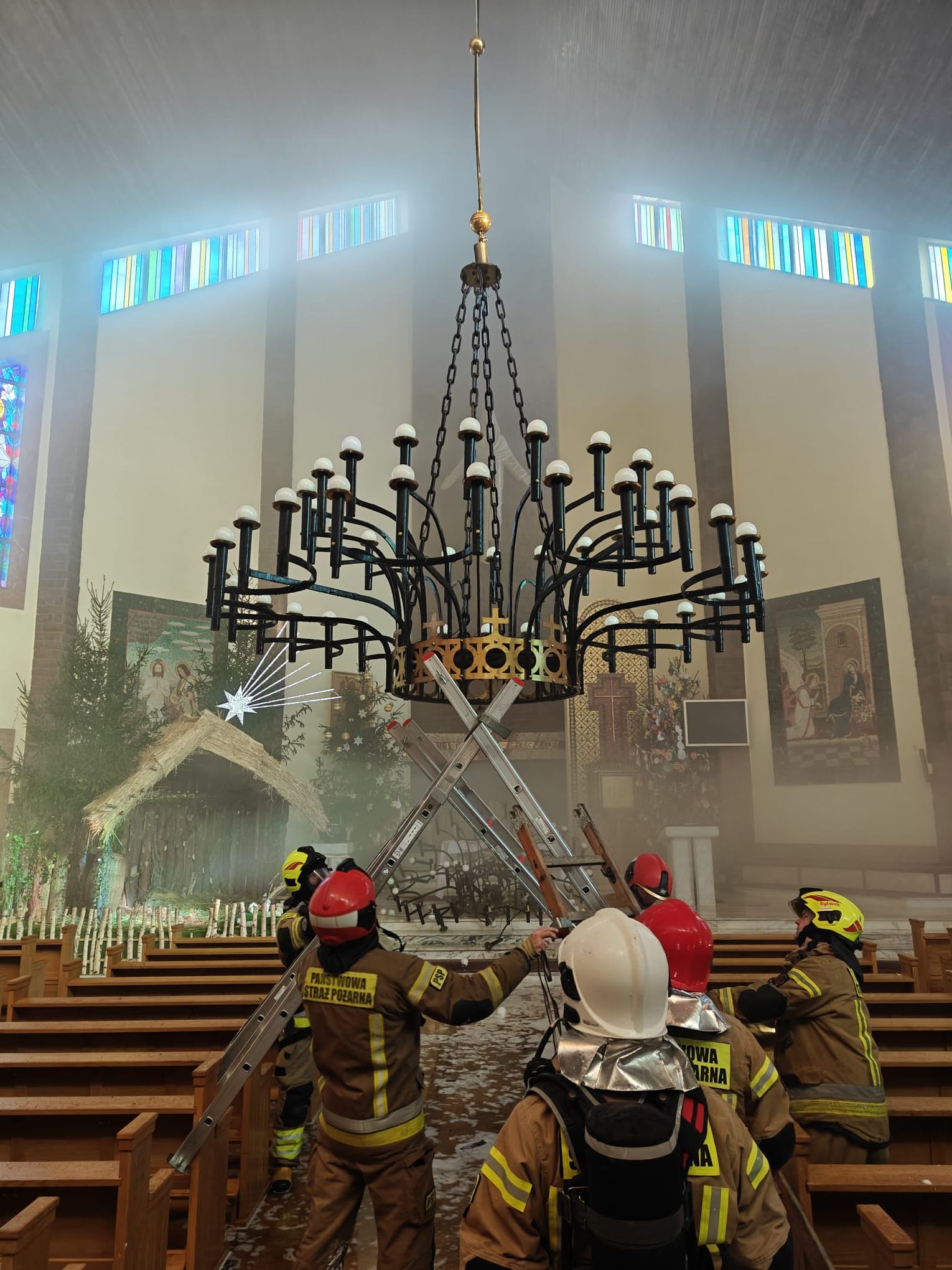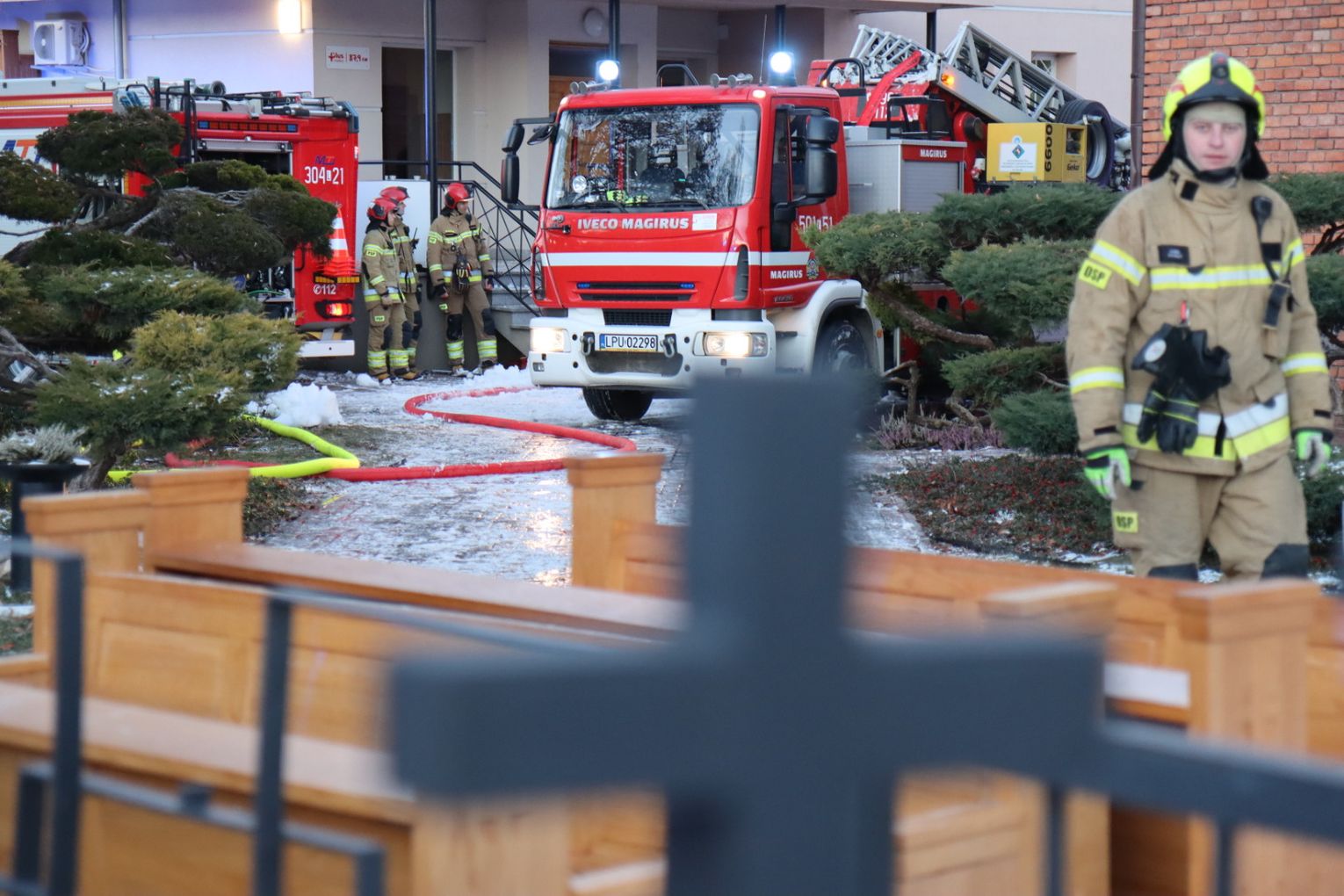 Zgłoszenie o pożarze dachu na budynku kościoła strażacy otrzymali w czwartek, w święta Bożego Narodzenia, przed godz. 7 rano. Na miejscu w pracowało 80 strażaków z 27 zastępów Państwowej i Ochotniczej Straży Pożarnej w tym 4 drabiny oraz 1 podnośnik hydrauliczny.