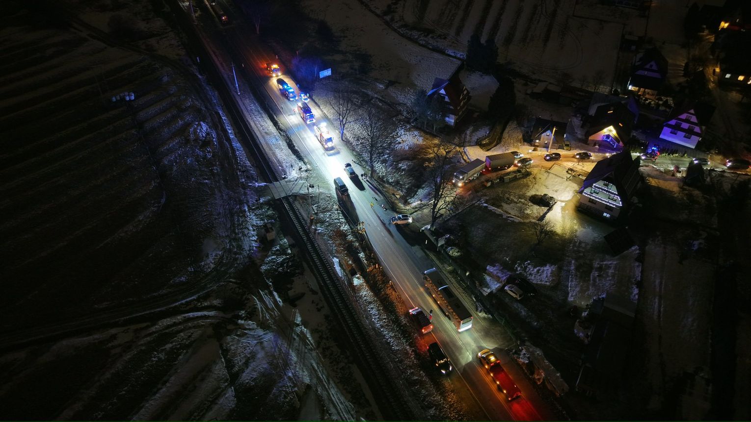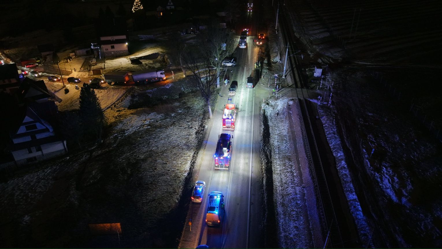 Dwie osoby zostały przetransportowane do szpitala; ich życiu nie zagraża niebezpieczeństwo. Droga jest całkowicie zablokowana. Na miejscu trwają czynności służb — prosimy o omijanie tego odcinka i stosowanie się do poleceń policjantów.