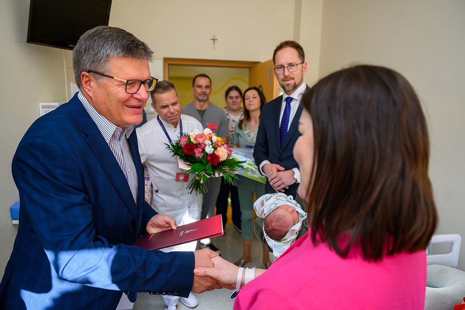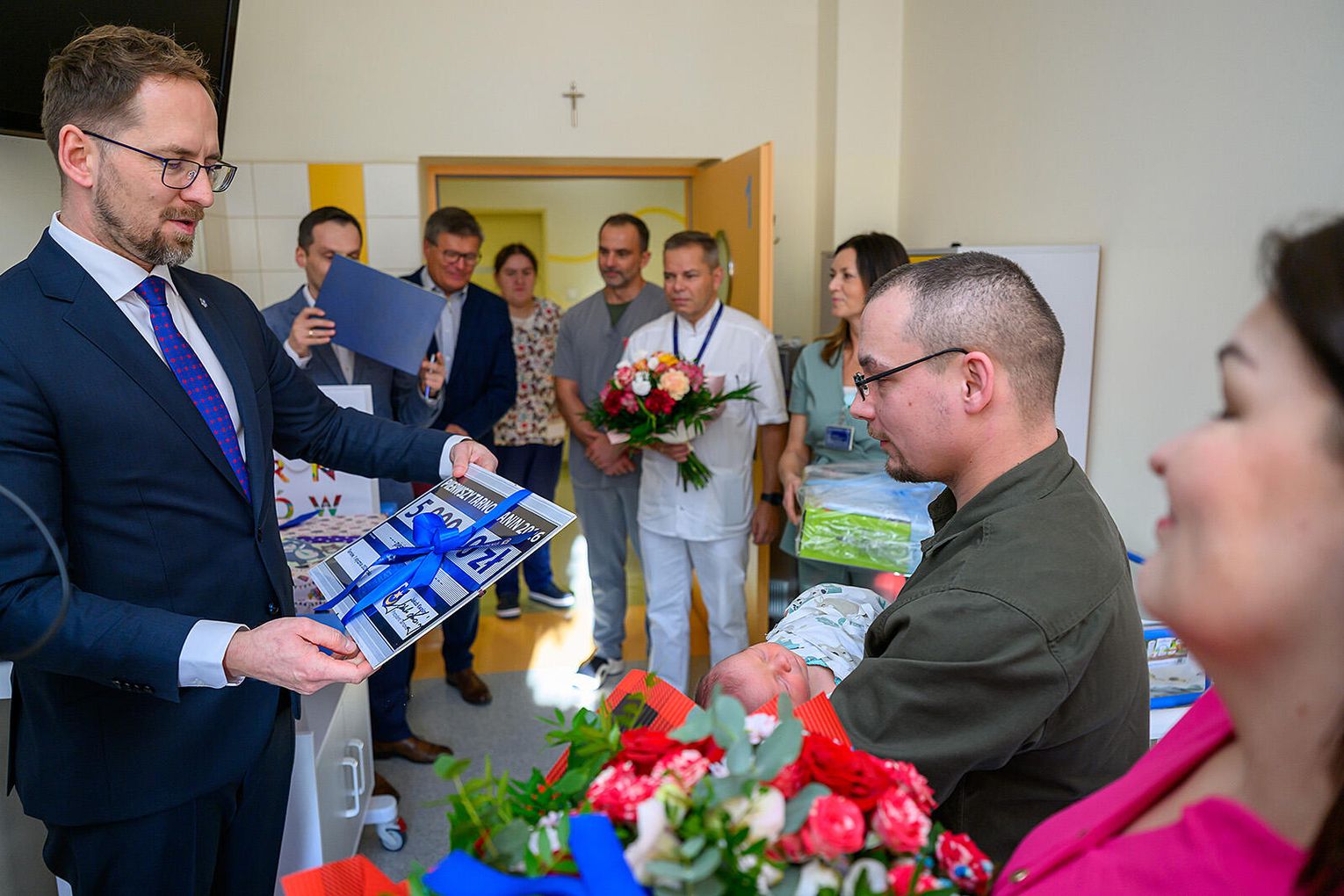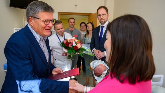 Świeżo upieczonych rodziców odwiedzili dzisiaj, 2 stycznia, prezydent Jakub Kwaśny, Grzegorz Górowski, kierownik Urzędu Stanu Cywilnego w Tarnowie oraz Marcin Kuta, dyrektor Starego Szpitala. Były gratulacje, kwiaty i upominki. Rodzice pierwszego dziecka urodzonego w 2026 roku w Tarnowie otrzymali również czek o wartości 5 tys. złotych.