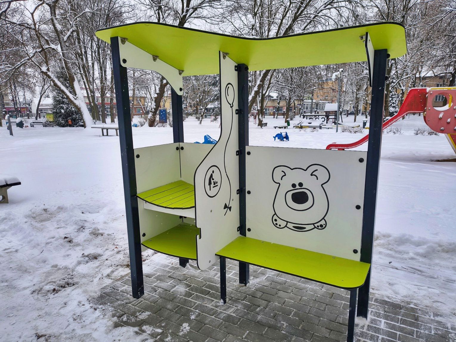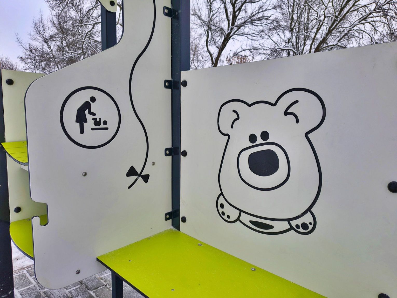 Każda konstrukcja składa się z zadaszenia chroniącego przed deszczem i słońcem, profilowanego przewijaka z półką na akcesoria, wygodnego siedziska oraz wieszaka na torbę. Pod względem technicznym obiekty opierają się na stalowych słupach nośnych oraz elementach ze stali nierdzewnej. Ścianki i dach wykonano z ekologicznej płyty HDPE, która cechuje się wysoką trwałością, odpornością na czynniki zewnętrzne oraz bezpieczeństwem w kontakcie z dziećmi. Wszystkie wykorzystane przy realizacji materiały i urządzenia posiadają stosowne atesty techniczne oraz spełniają obowiązujące normy jakości.