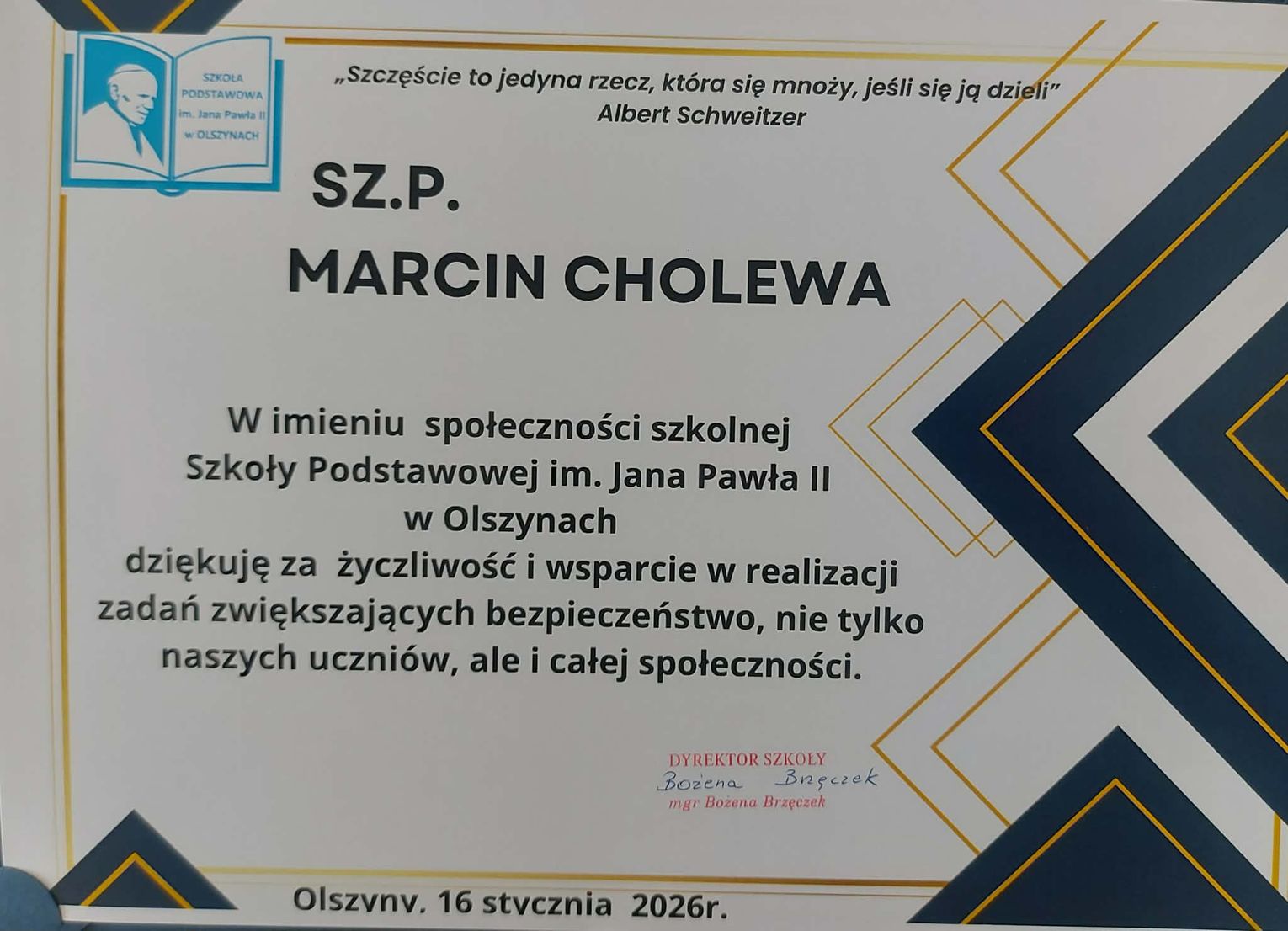 To wspaniała inicjatywa, która z pewnością przyczyni się do zwiększenia bezpieczeństwa najmłodszych uczestników ruchu drogowego. Kamizelki odblaskowe są niezwykle ważne, szczególnie w okresie jesienno-zimowym, kiedy dni są krótsze, a widoczność ograniczona. Dzięki zaangażowaniu pana Marcina Cholewy oraz przewodniczącego Piotra Dymona przewodniczącego Ogólnopolskich Związków Zawodowych Ratowników Medycznych, najmłodsze dzieci z klas 1-3 ze Szkoły Podstawowej w Olszynach, gmina Rzepiennik Strzyżewski będą mogły czuć się pewniej podczas spacerów i drogi do szkoły. Medycy przekazali 150 sztuk kamizelek odblaskowych.