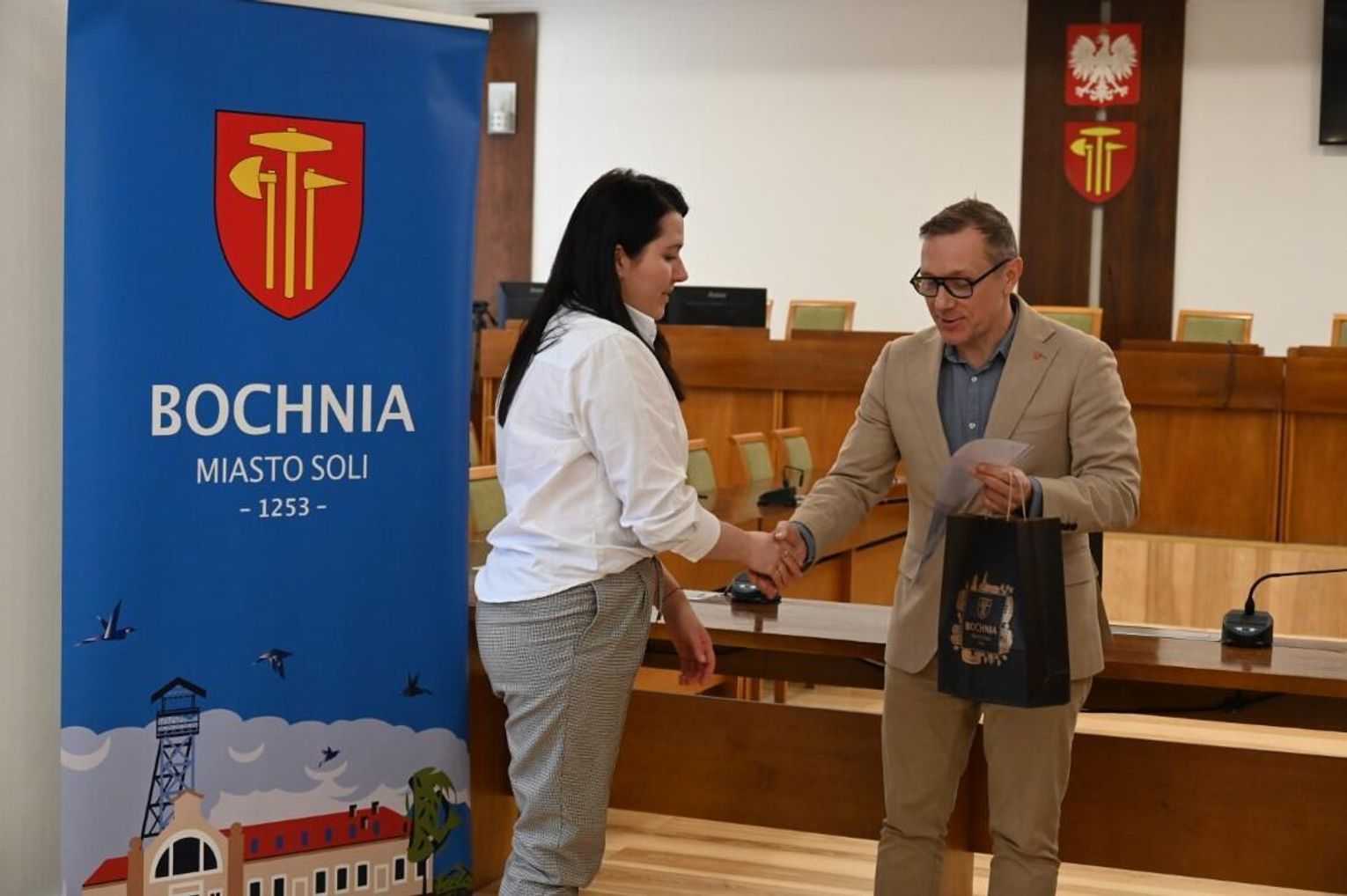 W poniedziałek, 19 stycznia 2026 r., w Urzędzie Miasta odbyło się spotkanie, podczas którego nagrody laureatom i osobom wyróżnionym, w imieniu Burmistrz Magdaleny Łacnej, wręczył jej zastępca – Filip Pach.