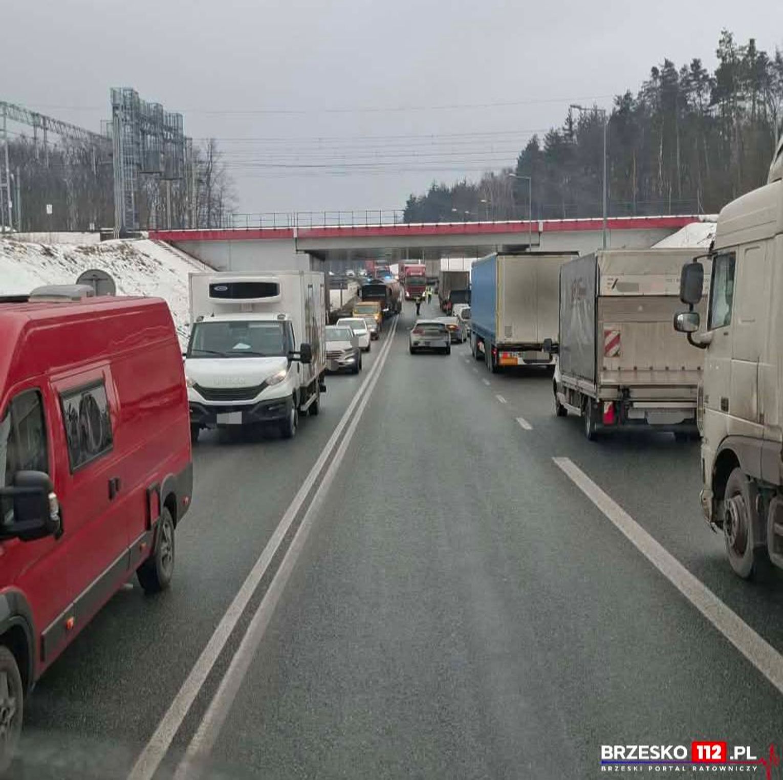 Zderzenie samochodów w Brzesku. Paraliż autostrady A4 w kierunku Rzeszowa i Nowego Sącza