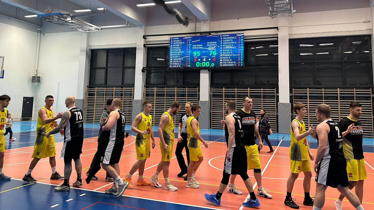 Po krótkiej przerwie, na osiem punktów gospodarzy, ośmioma „oczkami” odpowiedzieli także tarnowianie (po sześć punktów zdobyli w tym fragmencie Błażej Karlik i Grzegorz Idziak) i w 36 min na tablicy pojawił się wynik 84-62. Chwilę później po rzutach wolnych Dawida Łazarza notowano wynik 86-68. Końcowe minuty przyniosły kosmetyczną już tylko zmianę wyniku i mecz zakończył się porażką Stokersów 76-95 (19-16, 10-34, 25-26, 22-19).