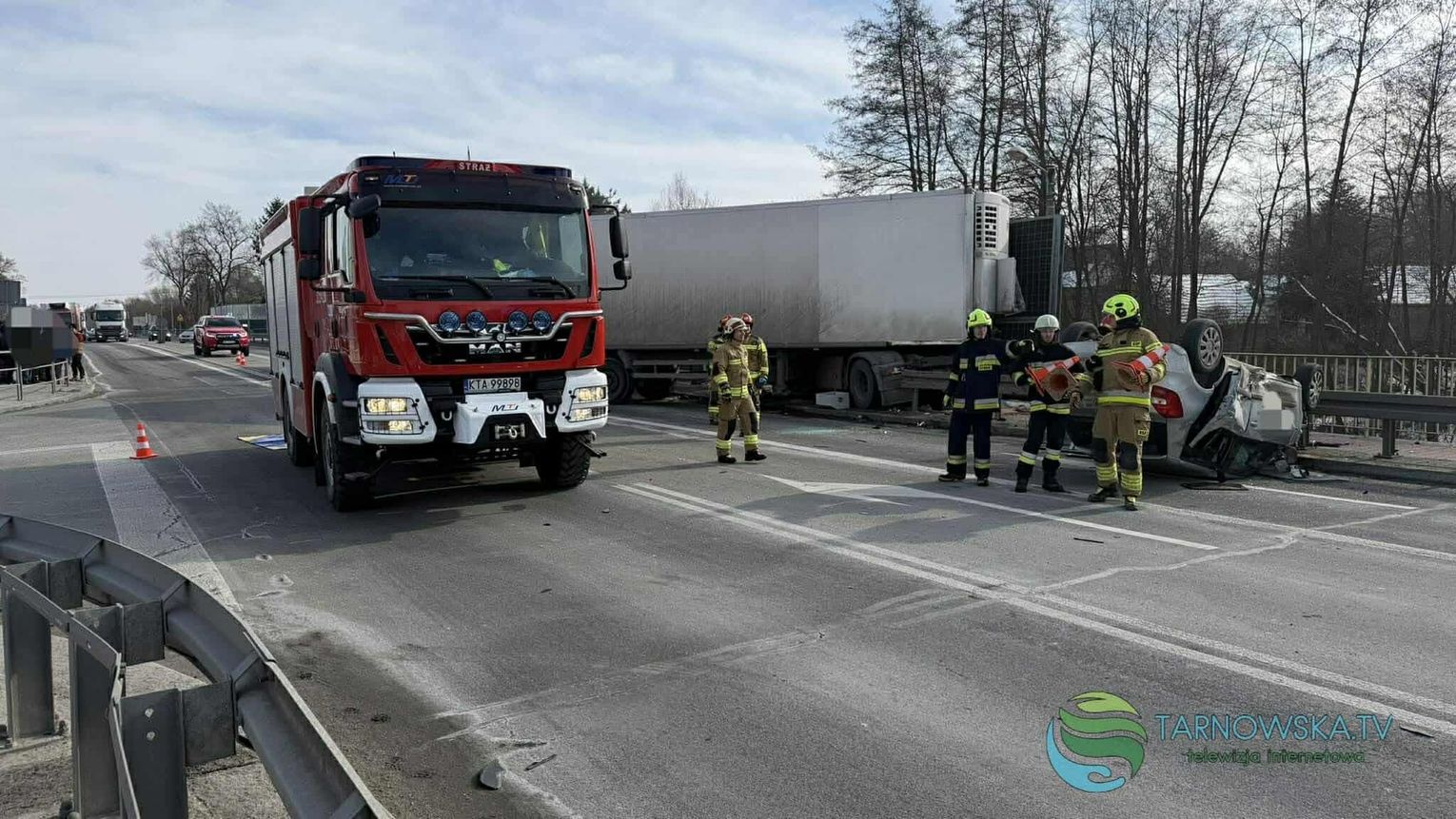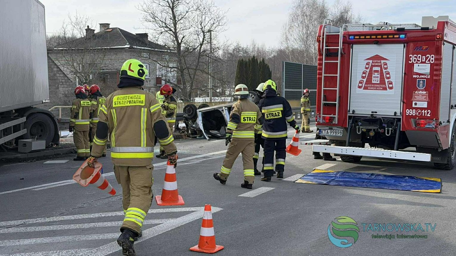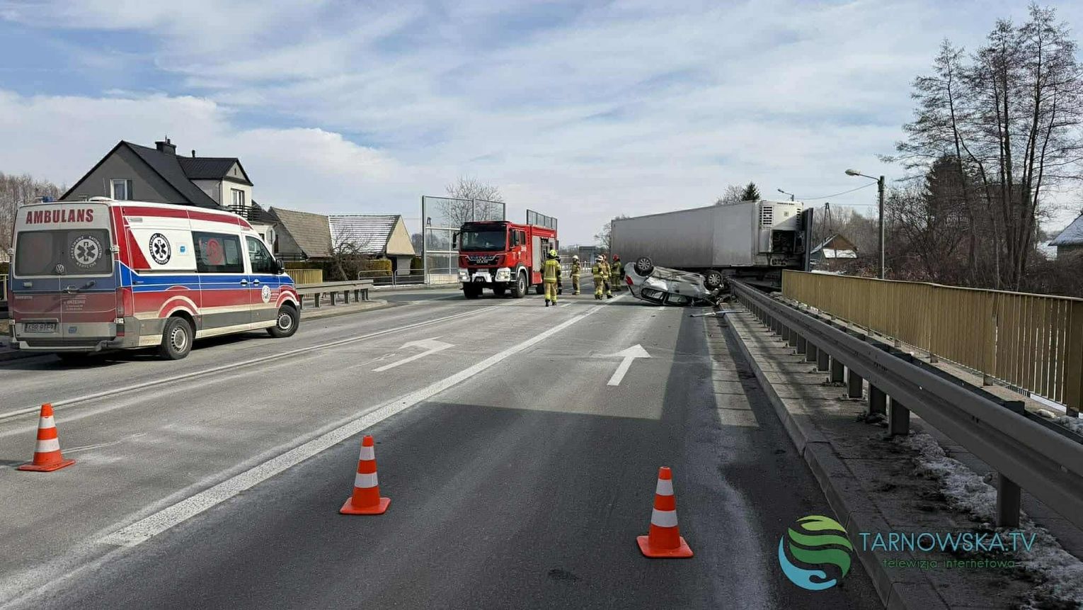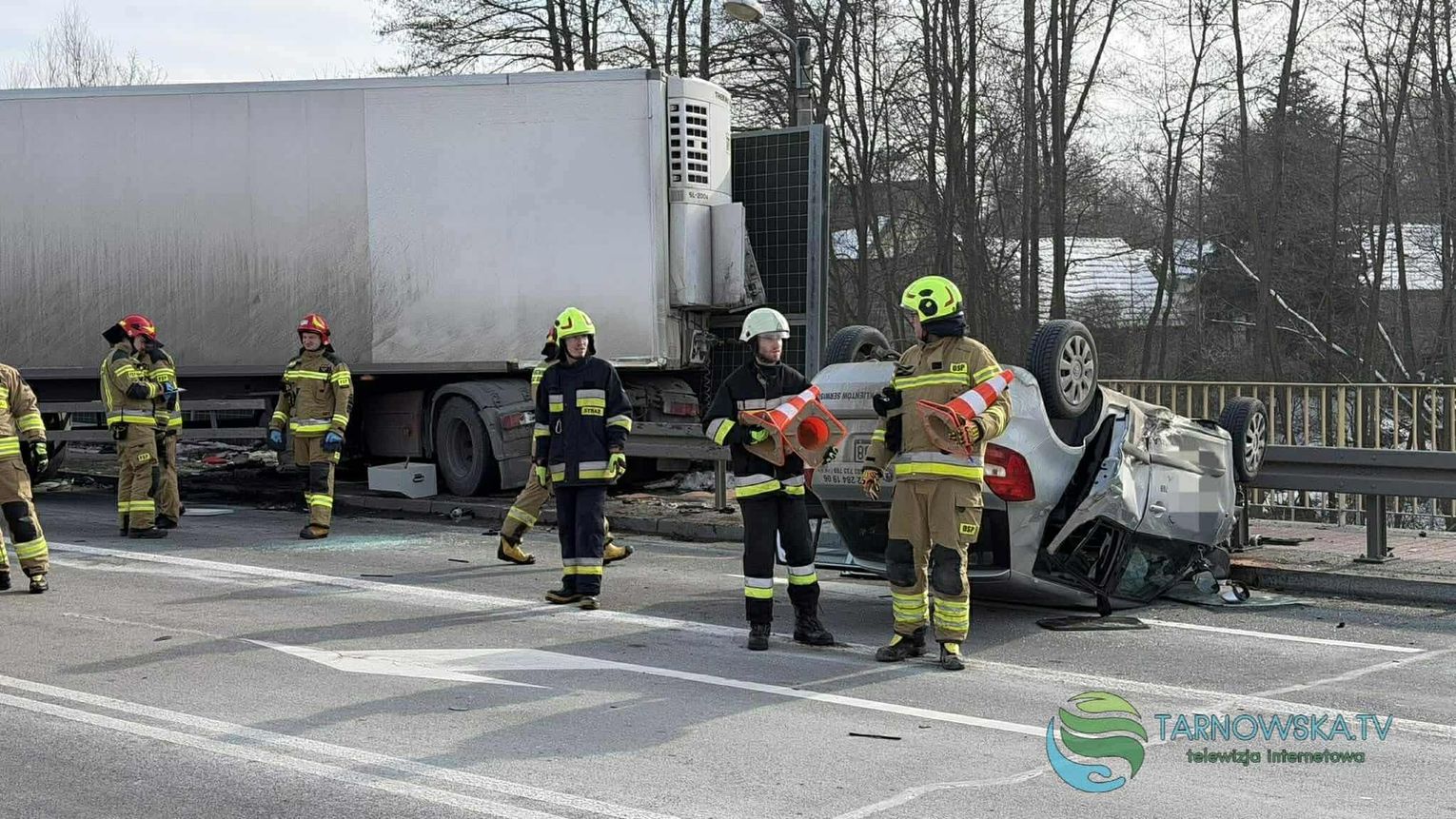 Na drodze krajowej 94 w Łoponiu przed godziną 12:00 doszło do zderzenia samochodu ciężarowego i osobowego, który dachował. Na miejsce zostały zadysponowane liczne zastępy straży pożarnej z Tarnowa, Brzeska i gminy Wojnicz, zespoły ratownictwa medycznego i patrole policji. Do zdarzenia doszło na wysokości skrzyżowania drogi krajowej z drogą w kierunku Biadolin Radłowskich.