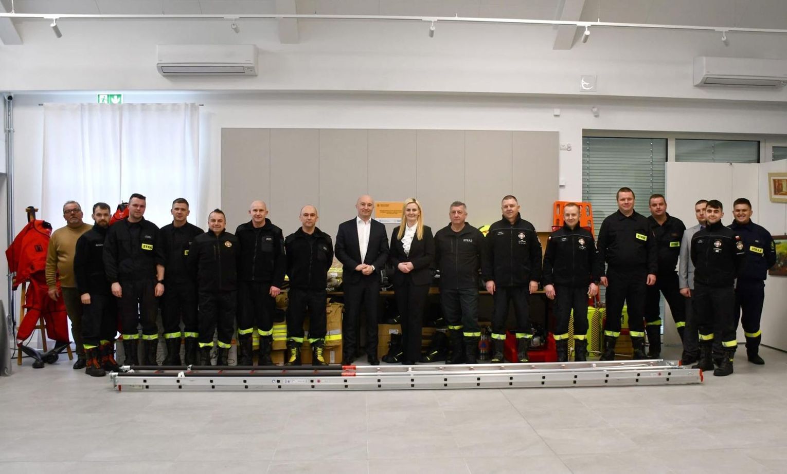 Gmina Skrzyszów w ramach podpisanych umów otrzymała w 2025 r. z Programu Ochrony Ludności i Obrony Cywilnej ponad 900 tys. zł. Dotacja ta pozwoliła na zakup m.in.: koparko-ładowarki, kamery termowizyjnej, drabiny strażackiej, defibrylatorów zewnętrznych AED, radiostacji samochodowych, pilarek spalinowych, motopompy pływającej czy pompy zanurzeniowej. Prezentacja zakupionego sprzętu odbyła się w budynku Biblioteki Publicznej w Skrzyszowie. W wydarzeniu – w imieniu wojewody małopolskiego Krzysztofa Jana Klęczara – uczestniczyła II zastępczyni dyrektora Wydziału Administracji i Logistyki Małopolskiego Urzędu Wojewódzkiego w Krakowie Dominika Babicz.