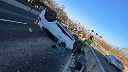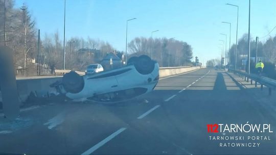 Do dachowania doszło w wyniku zderzenia dwóch pojazdów na skrzyżowaniu z sygnalizacją świetlną, ustaliła wstępnie tarnowska policja.