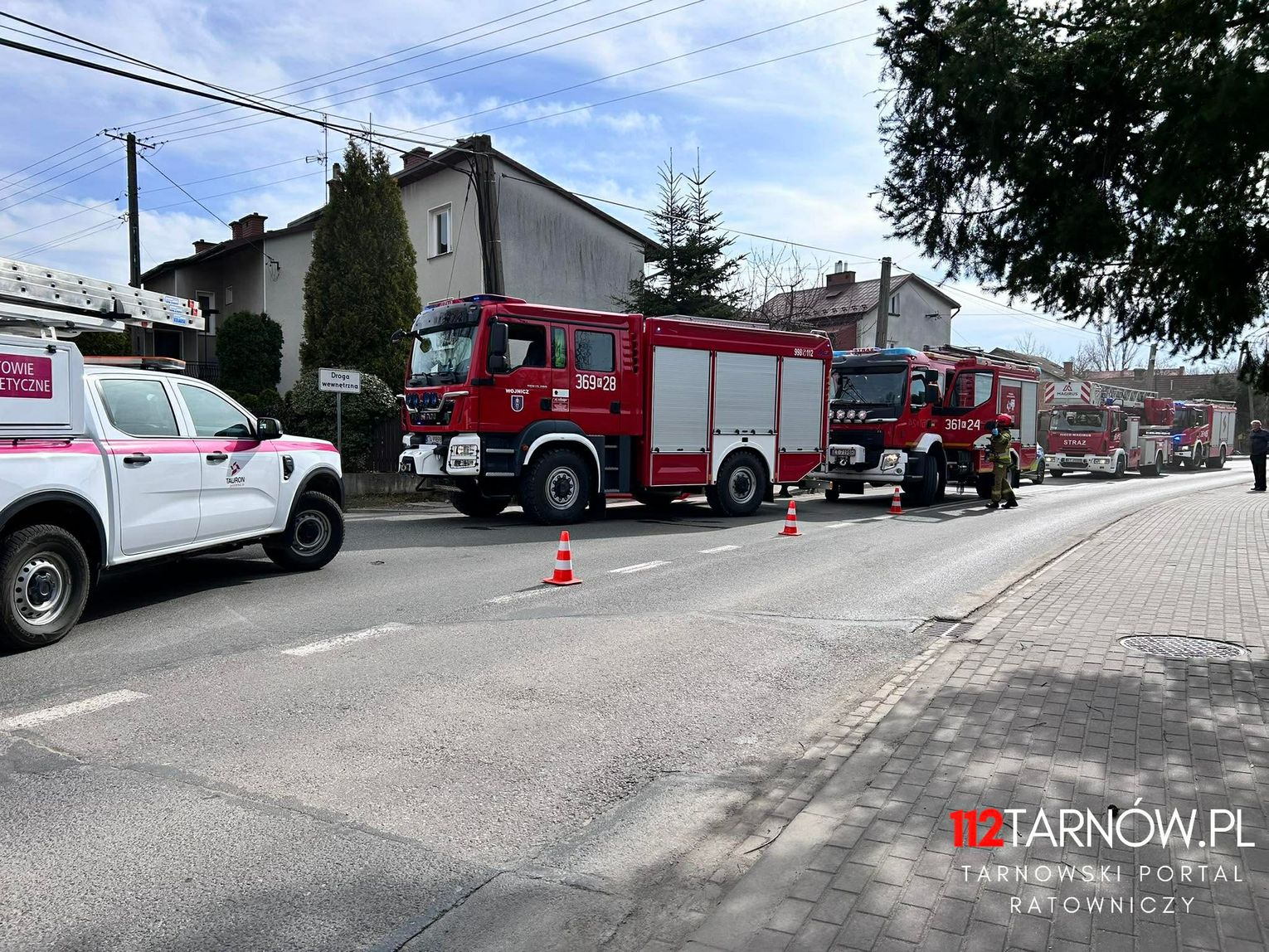 Służby po godzinie 12:00 zostały zaalarmowane o wydobywającym się dymie z poddasza jednego z domów przy ul. Warszawskiej w Wojniczu. Na miejsce zostało zadysponowanych pięć zastępów straży pożarnej, po dojeździe okazało się, że właściciel przygasił płomienie. Następnie strażacy przystąpili do przelewania powierzchni objętej pożarem, poprzez podanie prądu wody. Obecnie trwa rozbiórka poszycia dachowego aby wykluczyć inne miejsca zagrożone pożarem.
