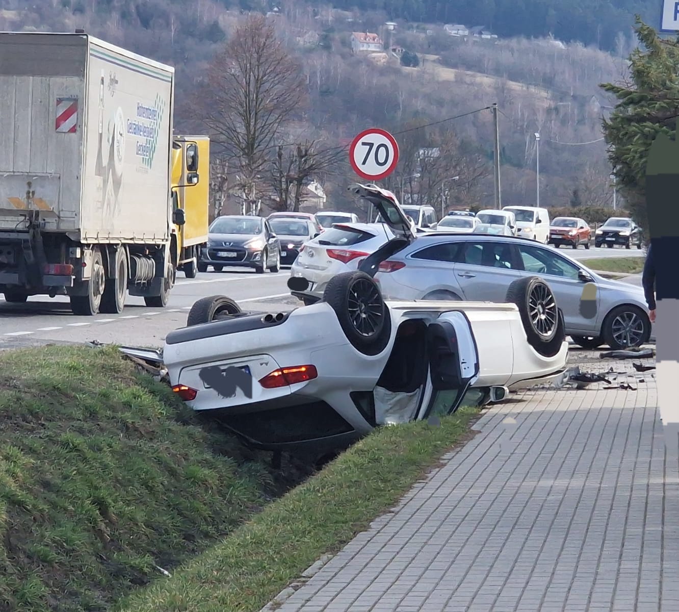 Na drodze krajowej DK75, ul. Sądecka w Czchowie, doszło do wypadku z udziałem osobowego Audi. Pojazd wypadł z drogi i dachował. W wyniku tego zdarzenia jedna osoba została poszkodowana i obecnie znajduje się pod opieką Zespołu Ratownictwa Medycznego (ZRM). Służby ratunkowe, w tym Ochotnicza Straż Pożarna z Czchowa, Państwowa Straż Pożarna z Jednostki Ratowniczo-Gaśniczej w Brzesku oraz policja, otrzymały zgłoszenie przed godziną 13:30. Obecnie na miejscu wprowadzono ruch wahadłowy, aby umożliwić bezpieczne prowadzenie działań ratunkowych.