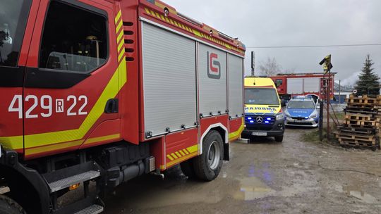 Na miejscu interweniował również patrol policji. Funkcjonariusze prowadzą czynności mające na celu ustalenie dokładnych okoliczności i przebiegu wypadku w zakładzie pracy.