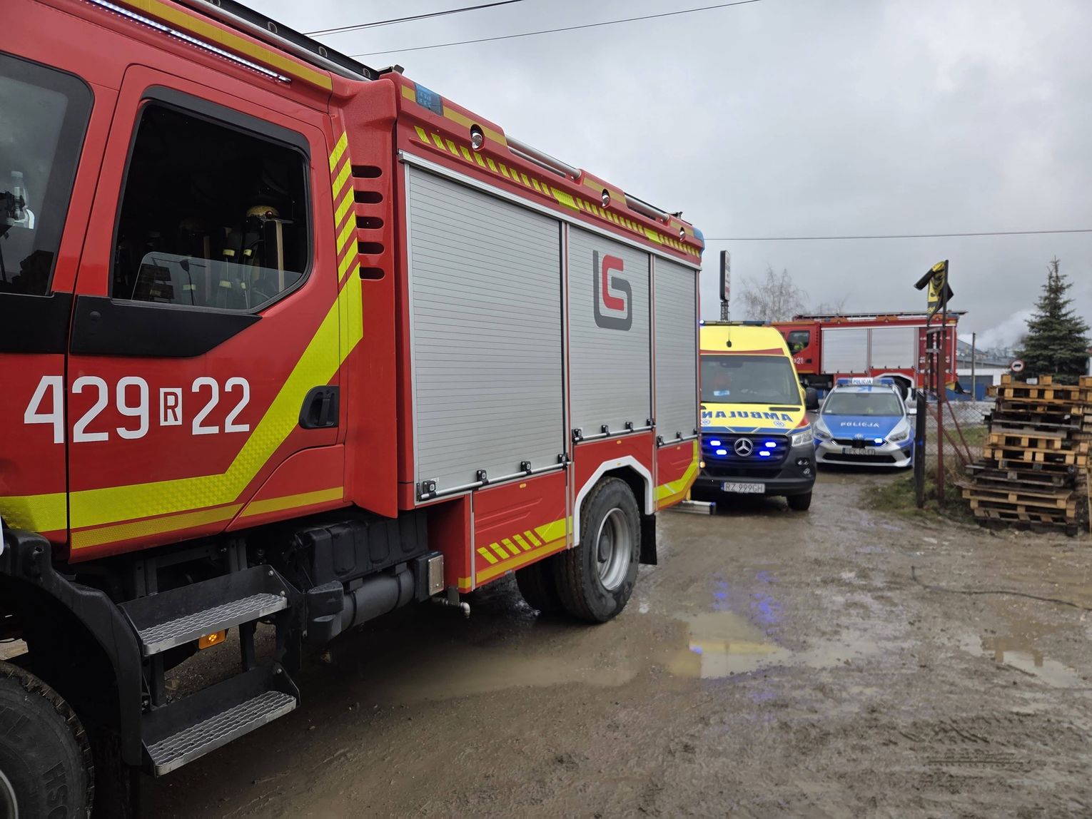 Po przybyciu na miejsce strażacy zastali mężczyznę, którego dłoń została przybita gwoździem do drewnianej palety. Poszkodowany był przytomny i pozostawał pod opieką ratowników.