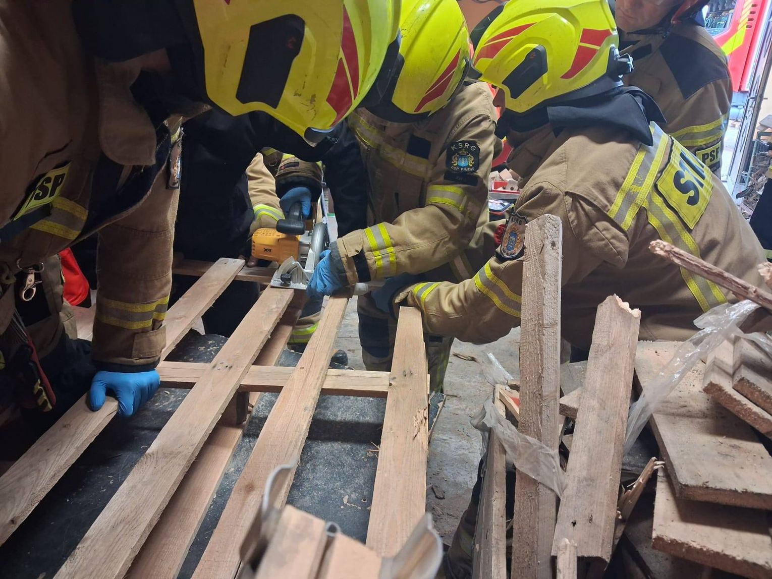 Strażacy wycięli fragment palety