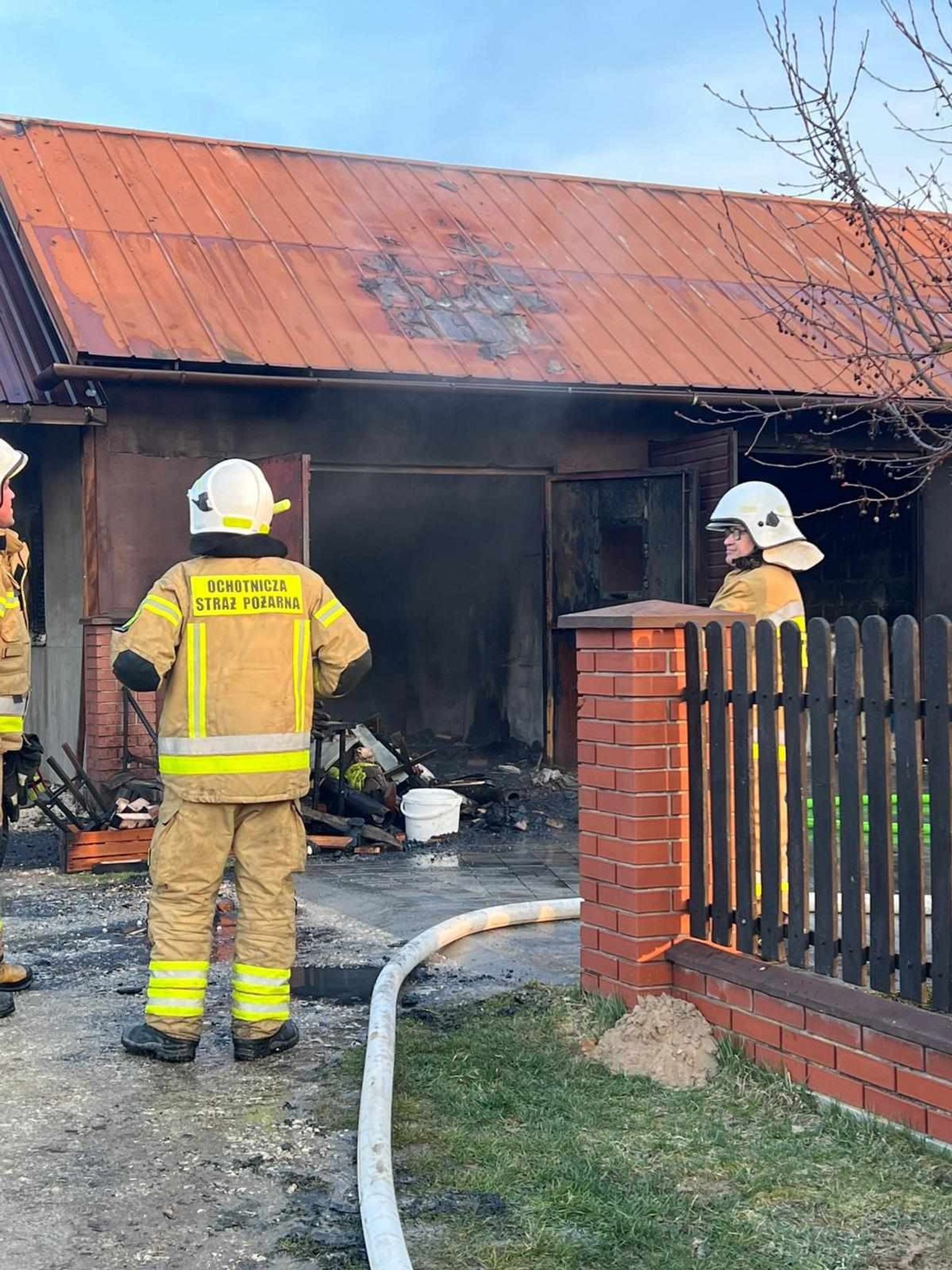 Po dojeździe na miejsce strażacy rozpoznali, że pali się garaż o konstrukcji drewniano-betonowej o wymiarach 25 x 8 m. Wewnątrz magazynowana jest maszyna stolarska oraz składowane drewno. Strażacy prowadzący działania gaśnicze; ze względu na silne zadymienie ratowników pracowali w aparatach ochrony dróg oddechowych.