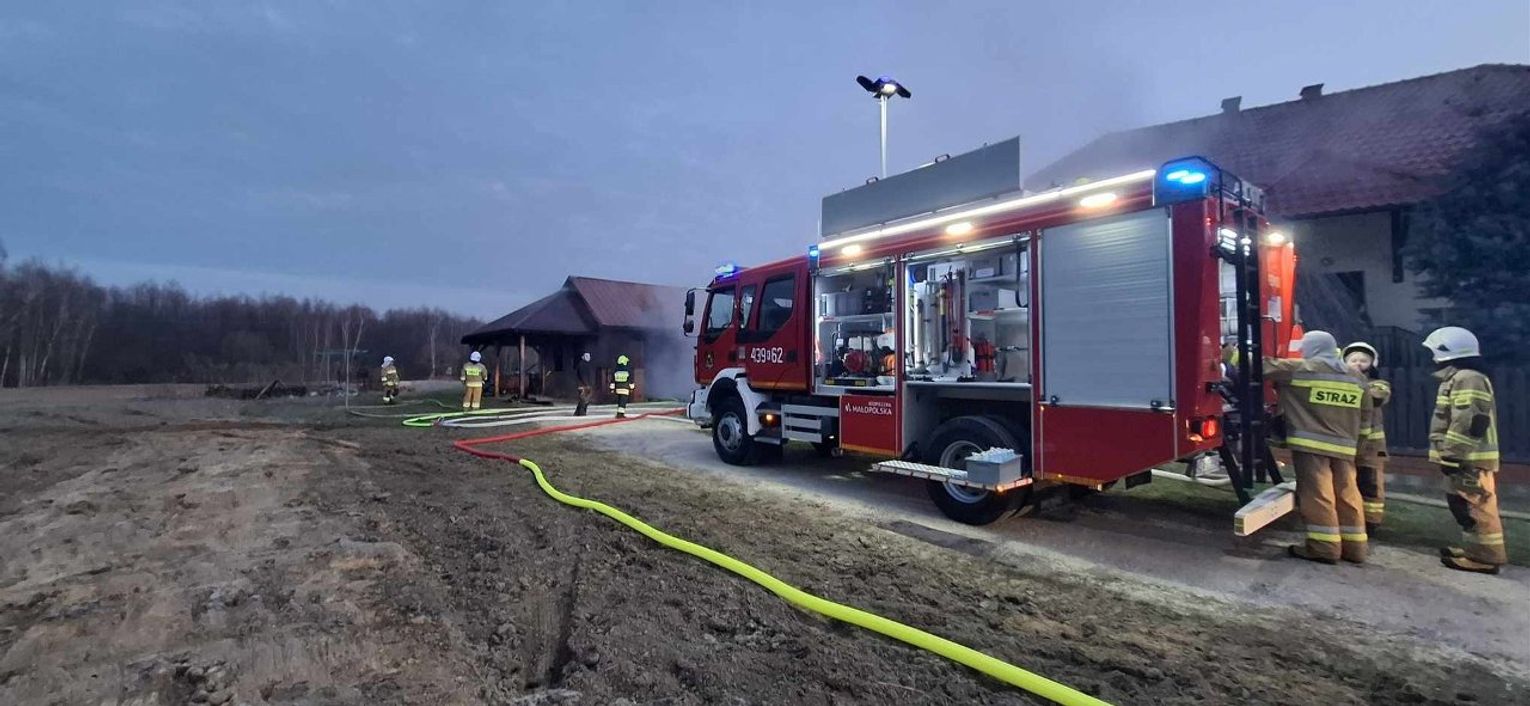 Dziś rano, o godz. 4:41, do Stanowiska Kierowania Komendanta Powiatowego PSP w Dąbrowie Tarnowskiej wpłynęło zgłoszenie o pożarze w Smykowie. Na miejscu pracowały zastępy z JRG Dąbrowa Tarnowska oraz druhowie OSP ze Smykowa, Luszowic, Radgoszczy i Nieczajej Górnej. Na miejscu była też policja.