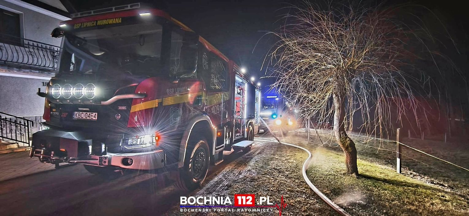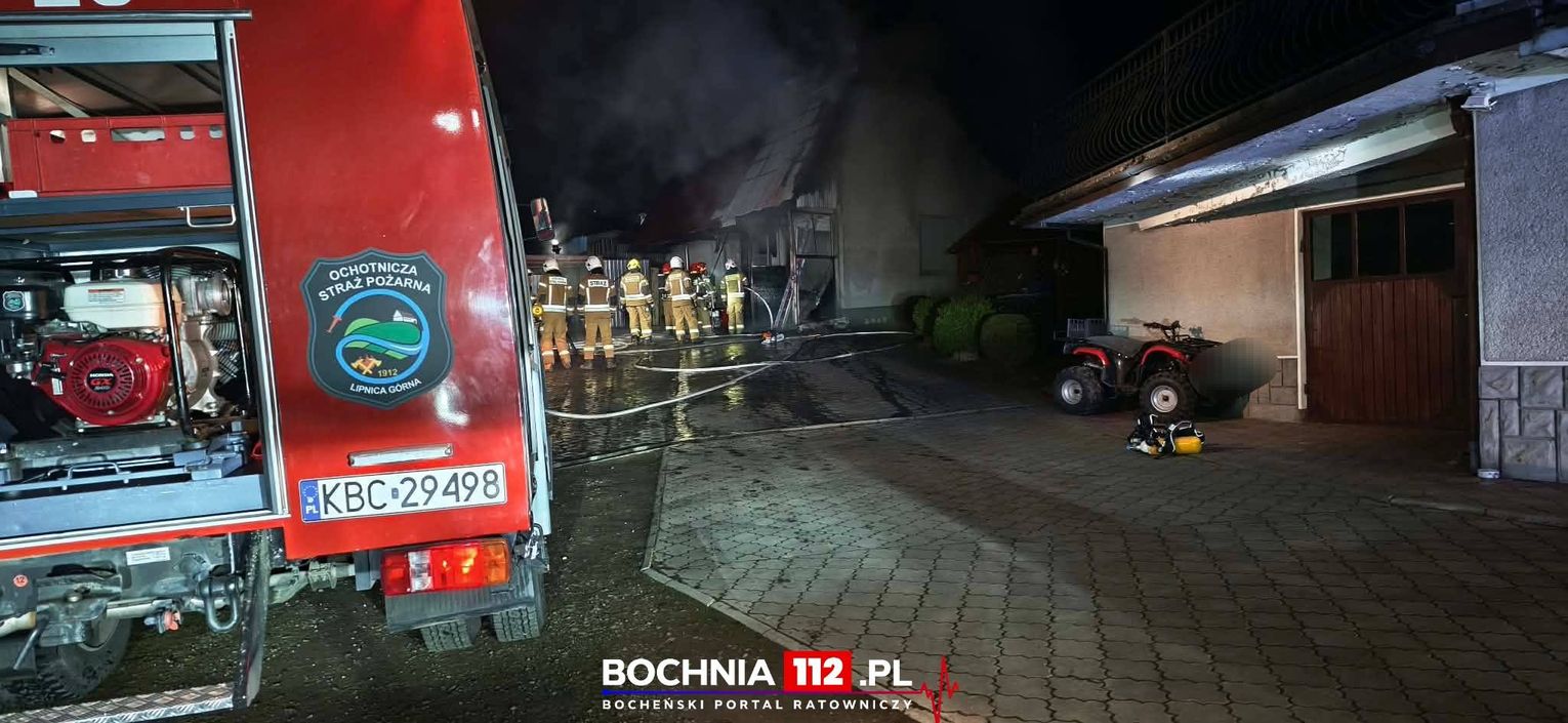 W nocy z 21 na 22 marca 2026 roku w miejscowości Lipnica Górna (powiat bocheński) doszło do pożaru budynku gospodarczego. Zgłoszenie wpłynęło kilka minut przed północą.