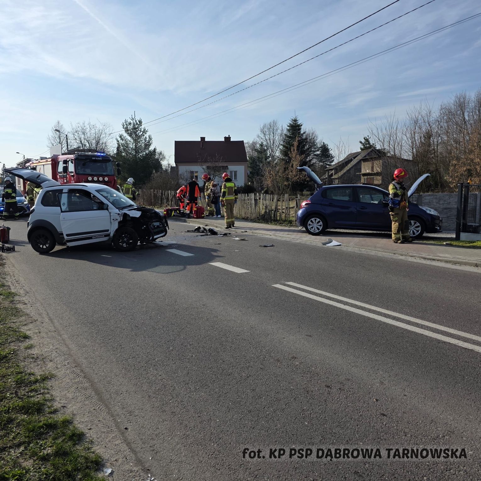 Do zdarzenia doszło przed godziną 8:00 w Oleśnie (pow. dąbrowski) na ulicy Sucharskiego. Jak wynika z ustaleń, zderzyły się tam dwa samochody osobowe.