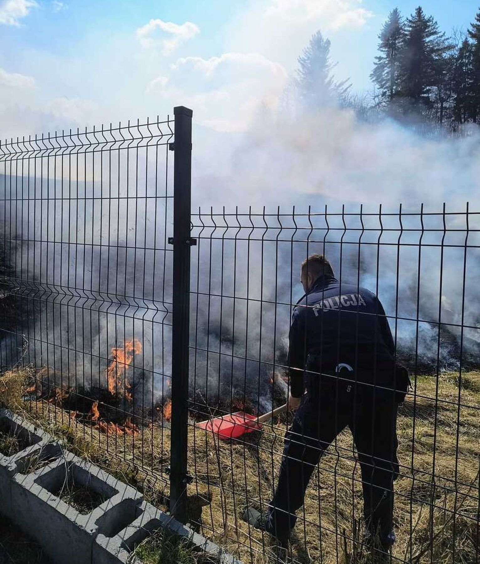 Wczoraj rano, policjanci z Baligrodu w powiecie leskim w Bieszczadach, jadąc przez miejscowość Bystre, zauważyli gęsty dym unoszący się znad łąki nieopodal lasu. Mundurowi natychmiast pobiegli w tym kierunku, by sprawdzić, co się dzieje. Okazało się, że płonie łąka, a płomienie błyskawicznie zajmują coraz to większe połacie suchej trawy. Ogień był już bardzo blisko zabudowań. Kilka metrów od pożaru znajdował się dom jednorodzinny i dwa domki letniskowe, w których nikogo nie było.