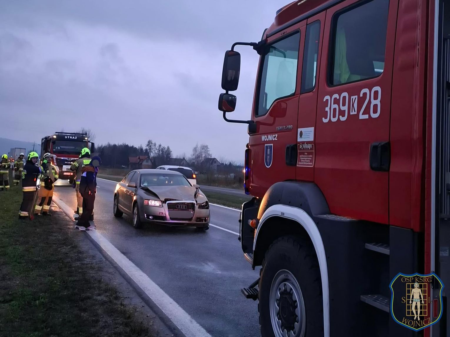 Na miejsce skierowano służby ratunkowe. Działania prowadzą zastępy Ochotniczej Straży Pożarnej z Wojnicza oraz jednostka OSP KSRG Wielka Wieś, a także patrol Policji.