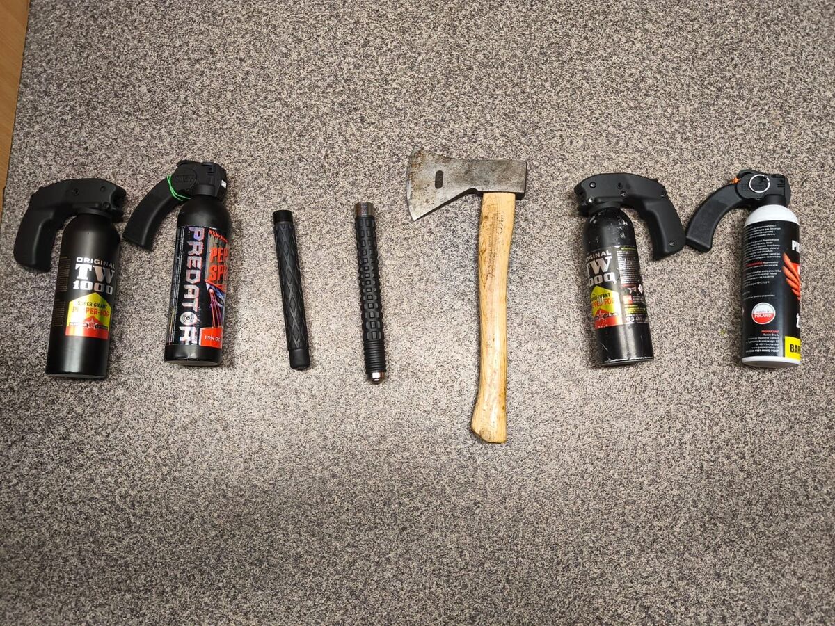 Podczas legitymowania funkcjonariusze ujawnili przy nim niebezpieczne przedmioty – siekierę oraz gaz pieprzowy. Z kolei 16-latek posiadał przy sobie m.in. gazy pieprzowe oraz pałki teleskopowe.