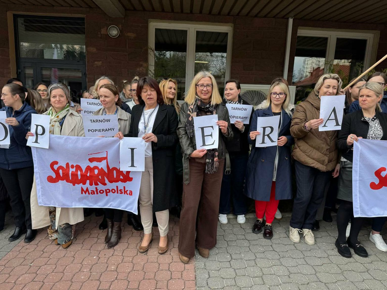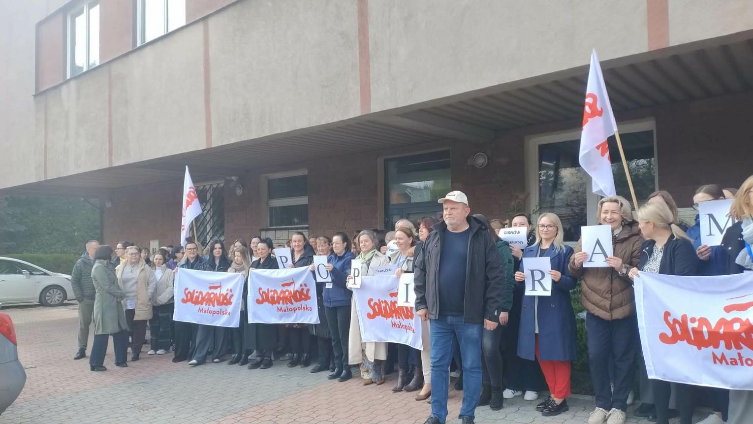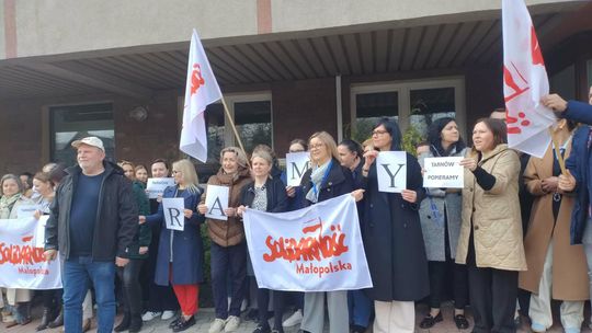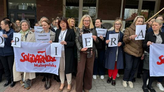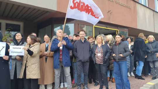 W Tarnowie w pikiecie uczestniczyło kilkadziesiąt osób. Pracownicy na krótko opuścili stanowiska pracy i zgromadzili się przed siedzibą instytucji.